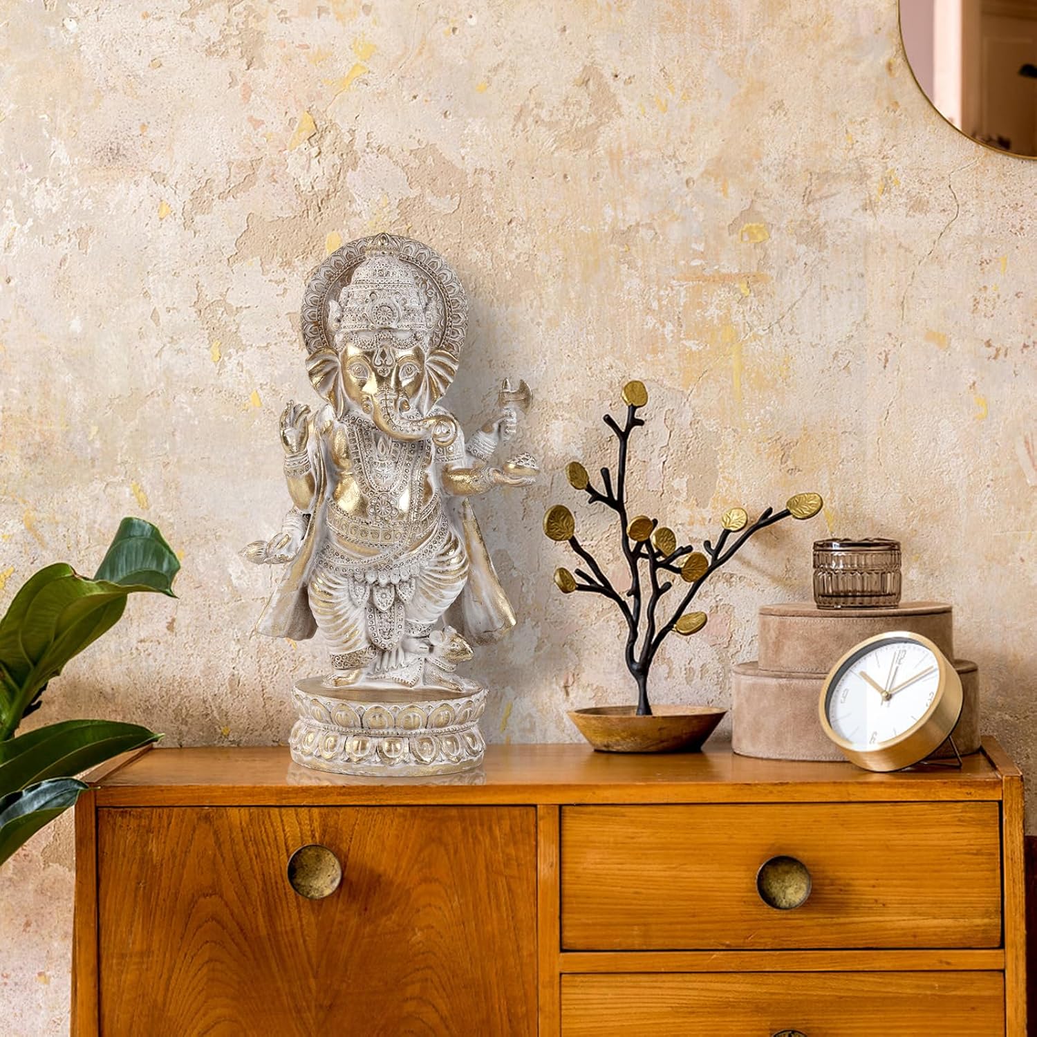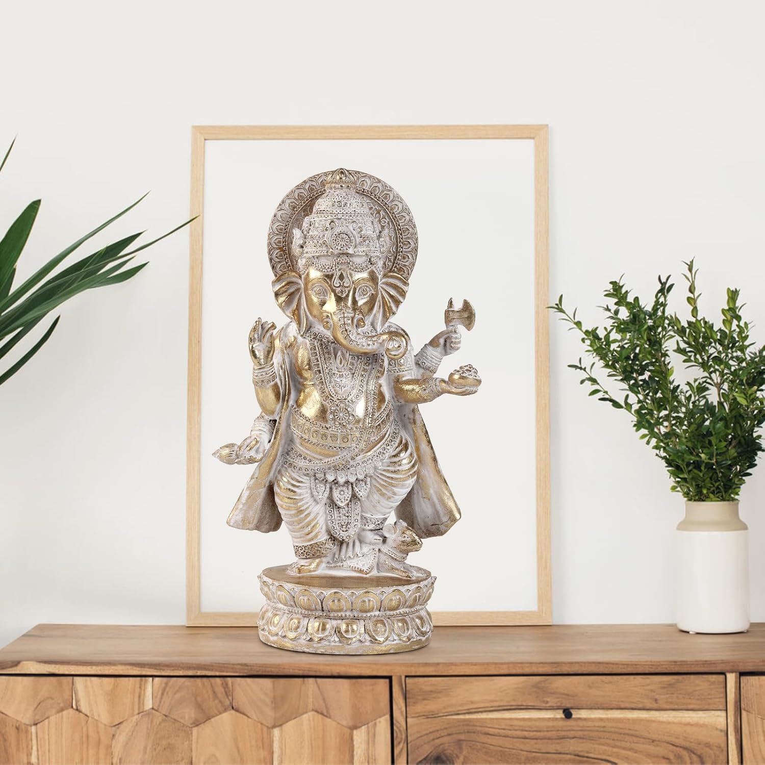 Gold Lord Ganesha Statues- Hindu Elephant God Statue Resin Sculpture Indian Ganesh Buddha Figurine Handmade Gift Decoration Ornaments for Home, Garden, Car