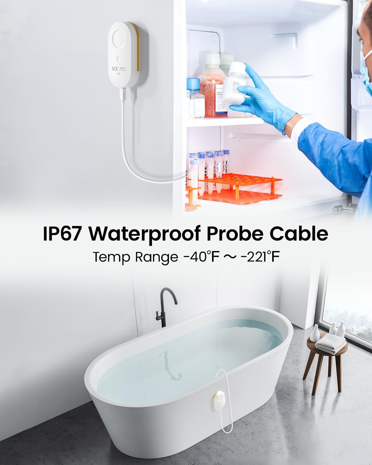 WiFi Remote Thermometer Freezer Alarm, 1/3 Mile Long Range, with IP67 Waterproof Probe, App Email Alert, with Digital Monitor Hub, 2 Smart Temperature Sensors for Hot Tub, Pool, RV, Pet Cage