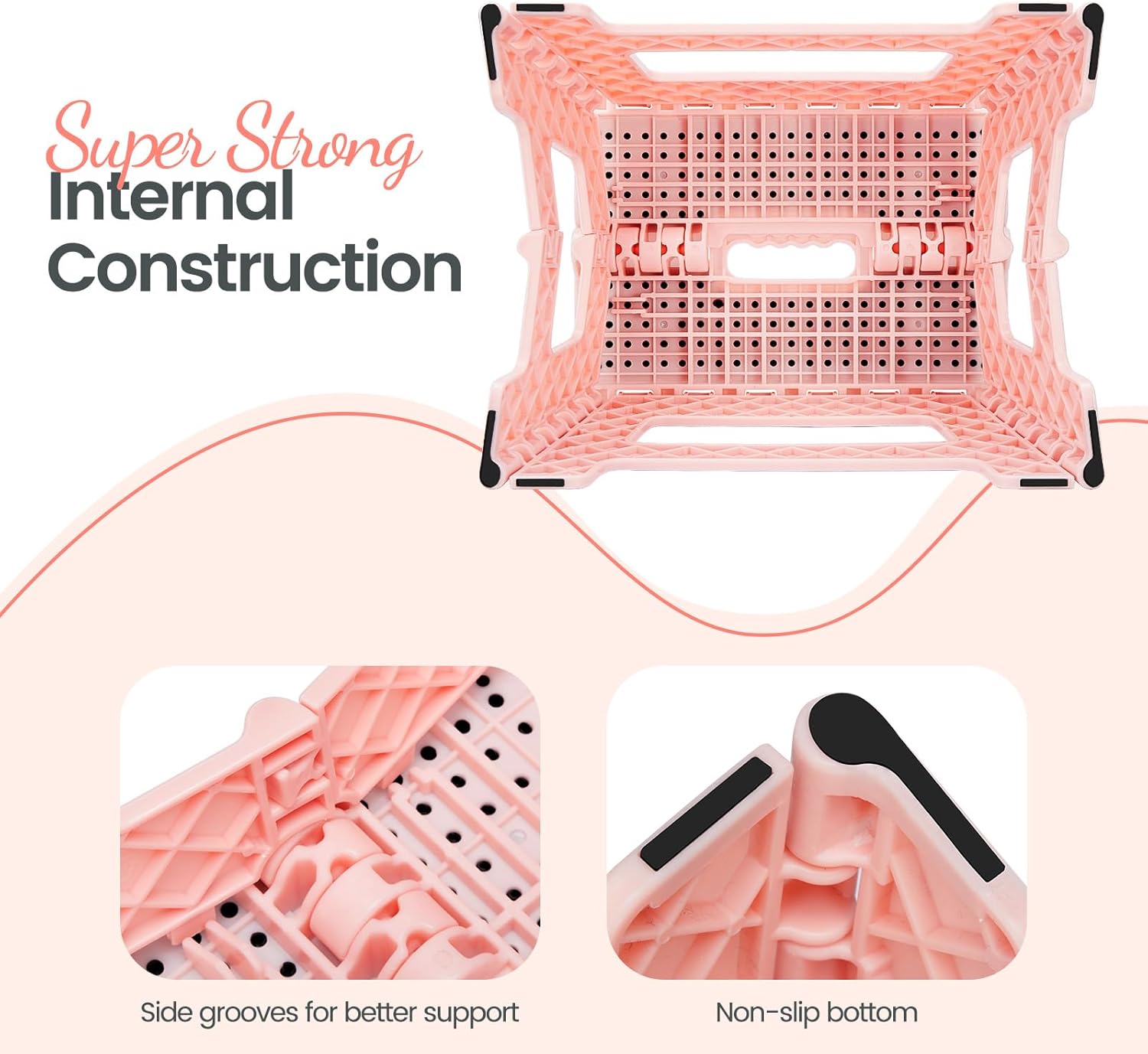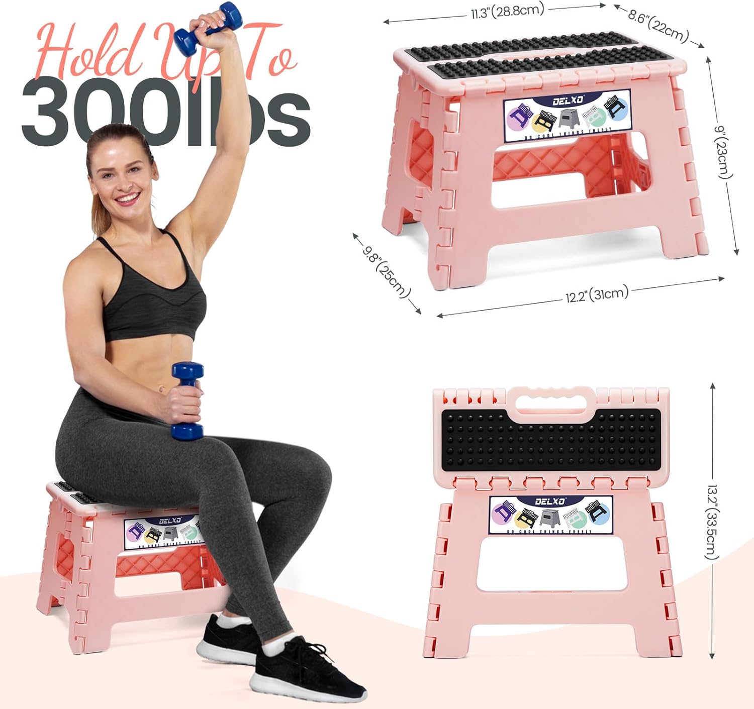 Delxo Folding Step Stool 9 Inch,Non-Slip Foldable Stools for Kids & Adults Up to 300 LBS,Kitchen Collapsible Fold Up Stepping Stool with Dotted 1 Pack,Pink