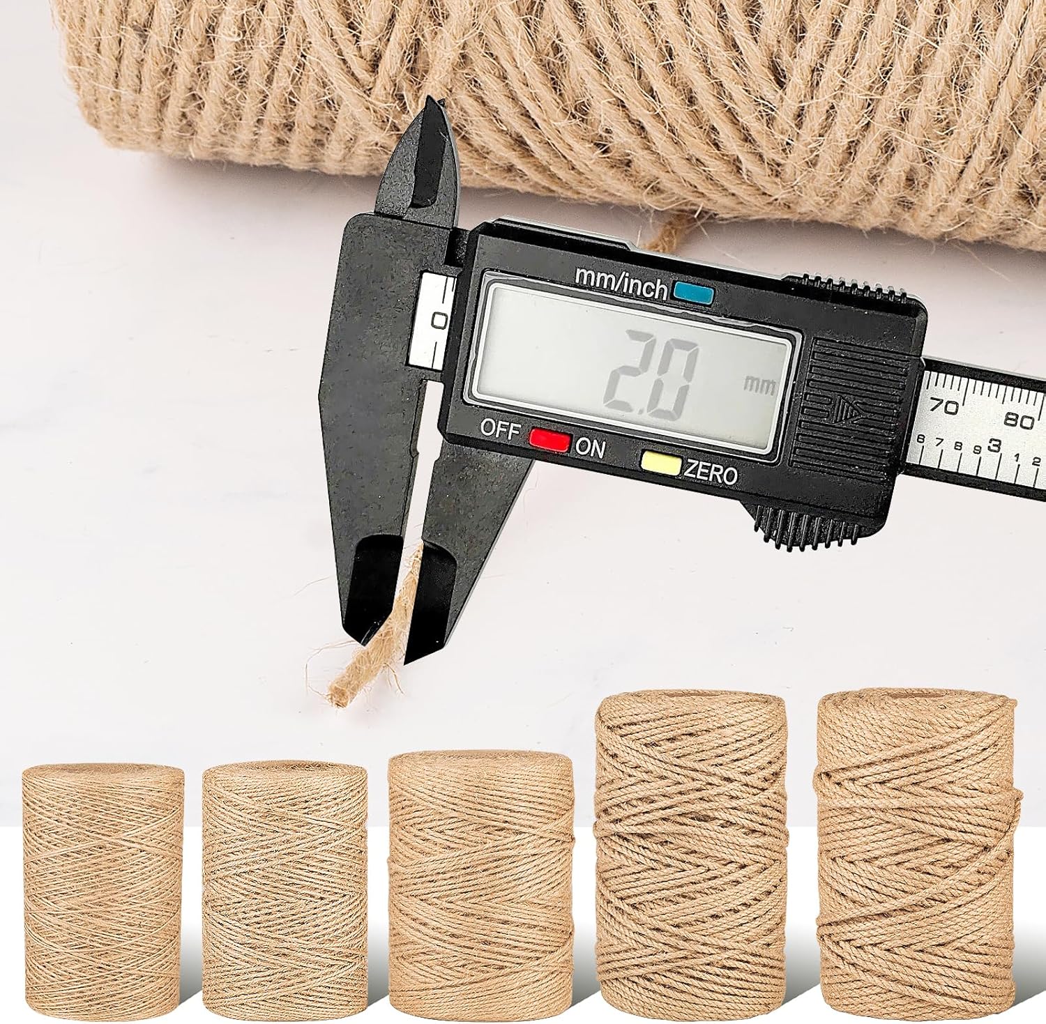 Natural Jute Twine String,Bulk Jute Rope Cord Twine for Crafting Gardening,Roll of Thick and Thin Twine for Gift Wrapping,Brown Decorative Rope,Ornament Twine for Cat Scratch Post (2mm x 656ft)