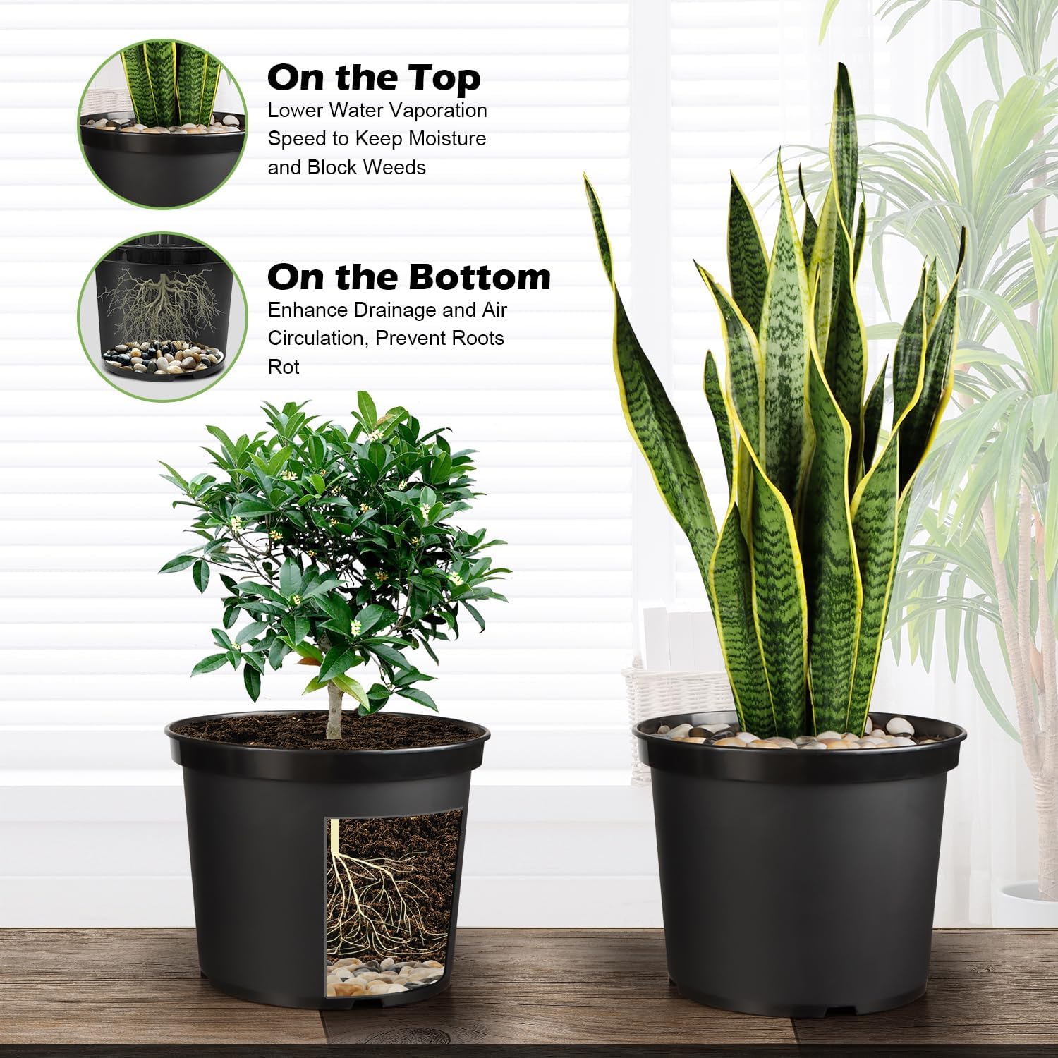 - Boosts Drainage & Root Protection: The 10lbs of pebbles create air pockets at the base of pots; enhances water flow to prevent soggy soil; stops roots from escaping through drainage holes