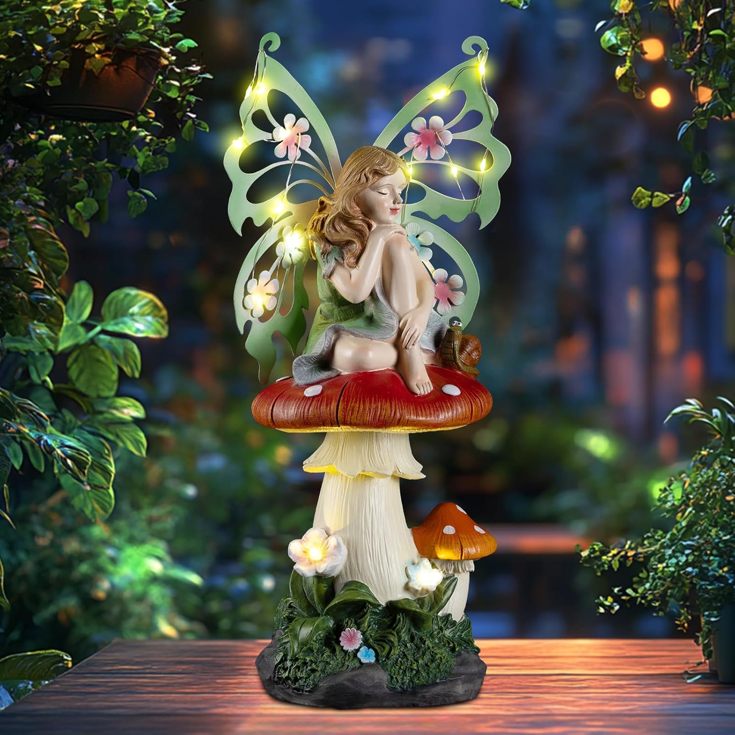 - [Whimsical Garden Décor] – This beautifully crafted fairy statue sitting on a mushroom, with delicate wings and hand-painted details, adds a touch of enchantment to your yard, balcony, or garden.