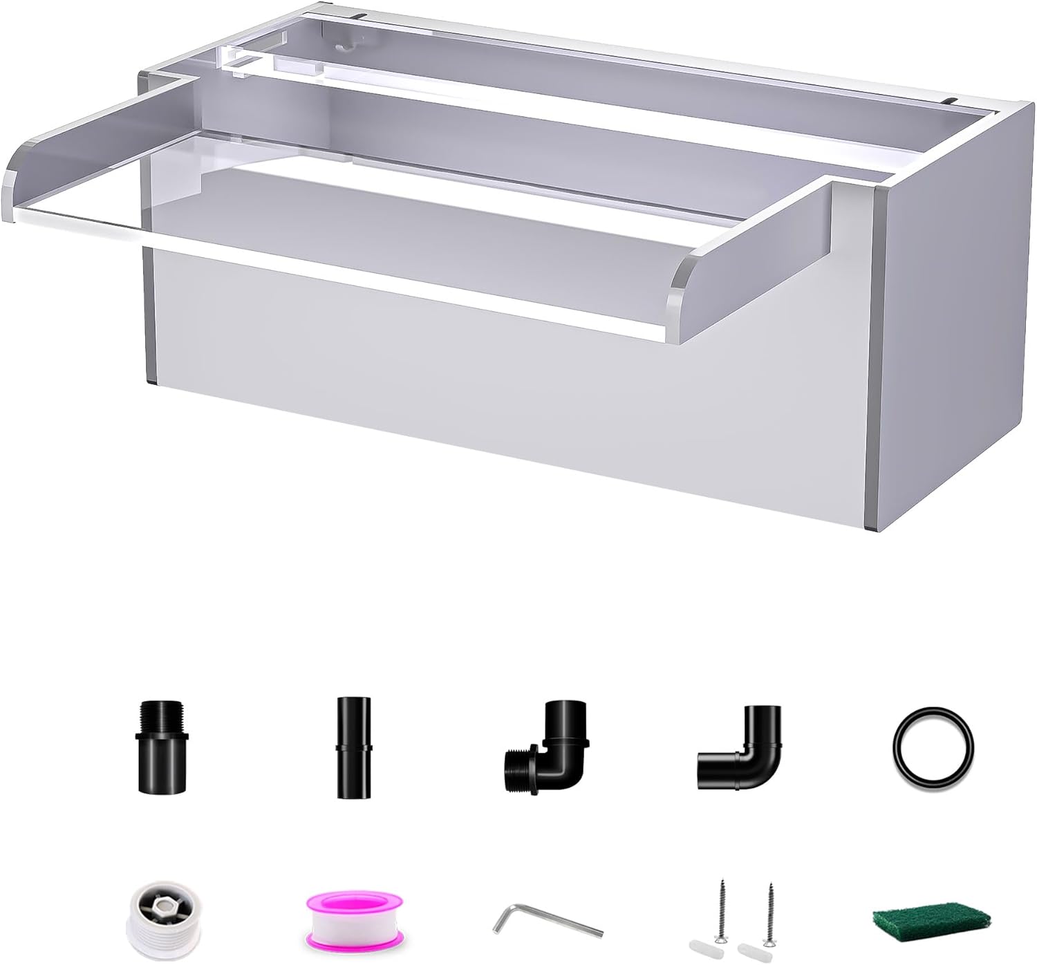 - 【Upgrade High Quality Acrylic】 - Constructed from durable, leak-proof acrylic that is rust-proof, this waterfall fountain has a sleek, modern design. The high quality material ensures long-lasting beauty and enjoyment, creating an elegant and beautiful fountain effect for your garden, swimming pool, or pond. LED light strips not included, but available separately.