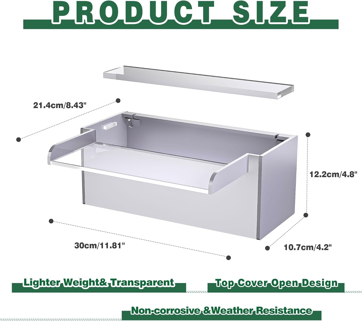 Pool Fountain, LONGRUNNEW Transparent Acrylic Pool Waterfall Spillway, 11.8 Inches Pool Water Feature for Garden Patio, Backyard Koi Pond Decor