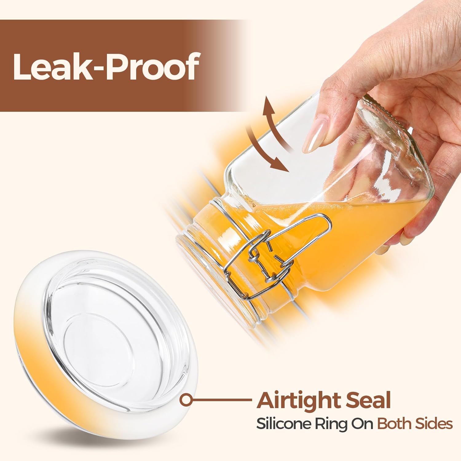 - Leak-Proof Small Jars: These food-grade canning jars 8 oz feature silicone gaskets and stainless steel clips for airtight sealing. Ideal for keeping food fresh for storing liquids like dressings, sauces, jam and soups