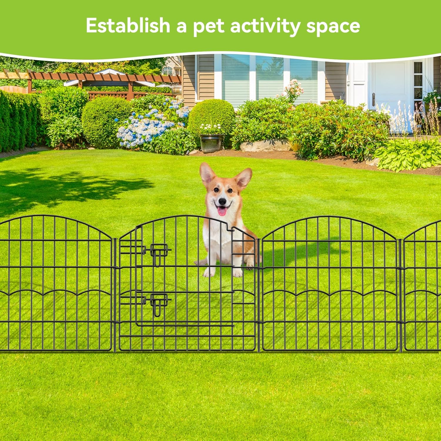 - Fence Size: Each garden fence panel measures 24"W x 24"H with a 1.45" gap, while the 7 metal stakes are 0.39" in diameter and 27.6" tall (7.8" into the soil) for secure anchoring in the ground. The removable fence includes 5 panels + 1 gate, connecting 6 panels, with a total length of 12 feet. The no-digging fence can be added or removed freely, giving you complete flexibility to customize your area.
