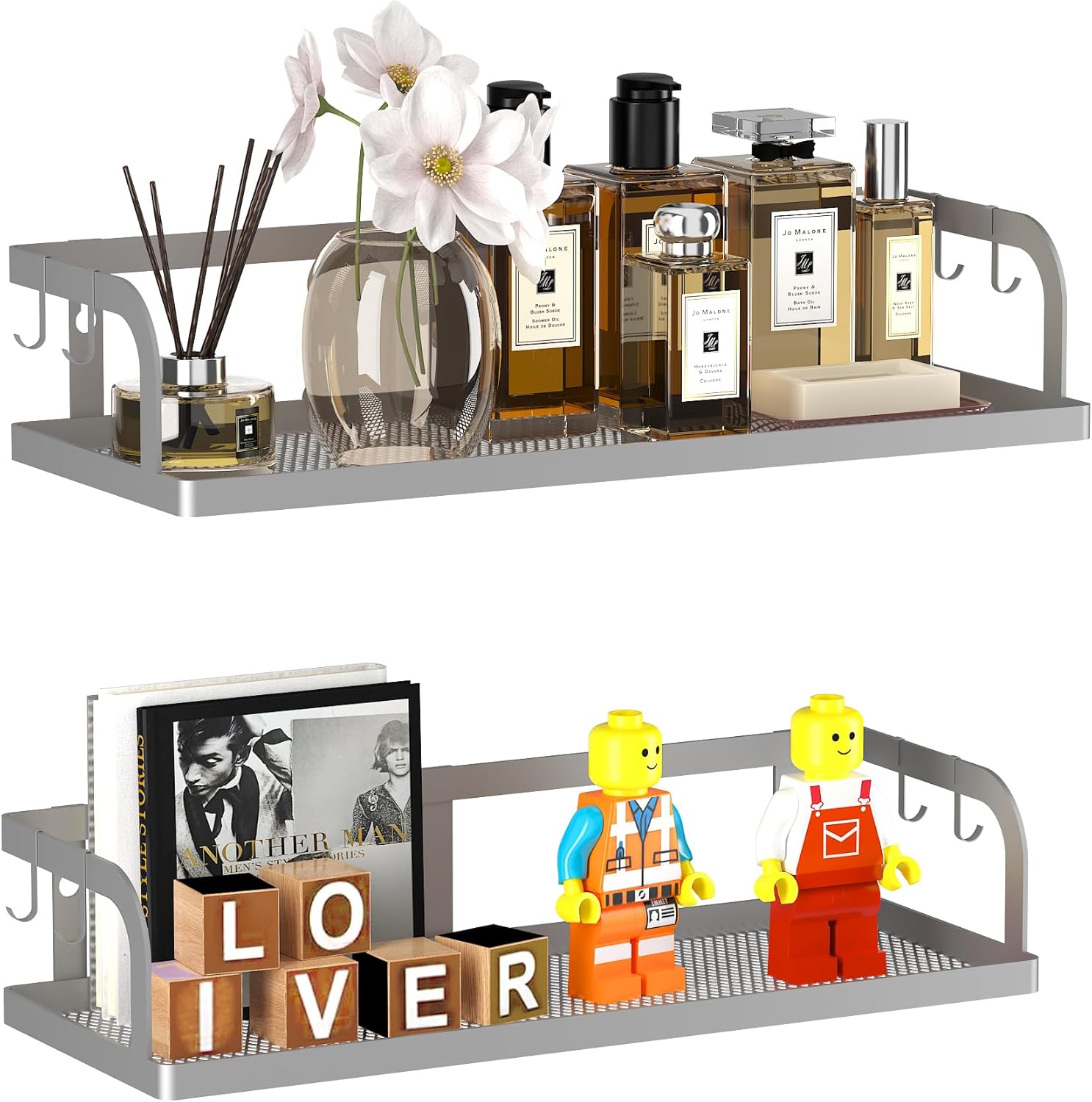 PUSDON Metal Wall Hanging Basket 2 Packs DIY Suitable for Multiple Scenes - Middle Silver Grey Hollowout