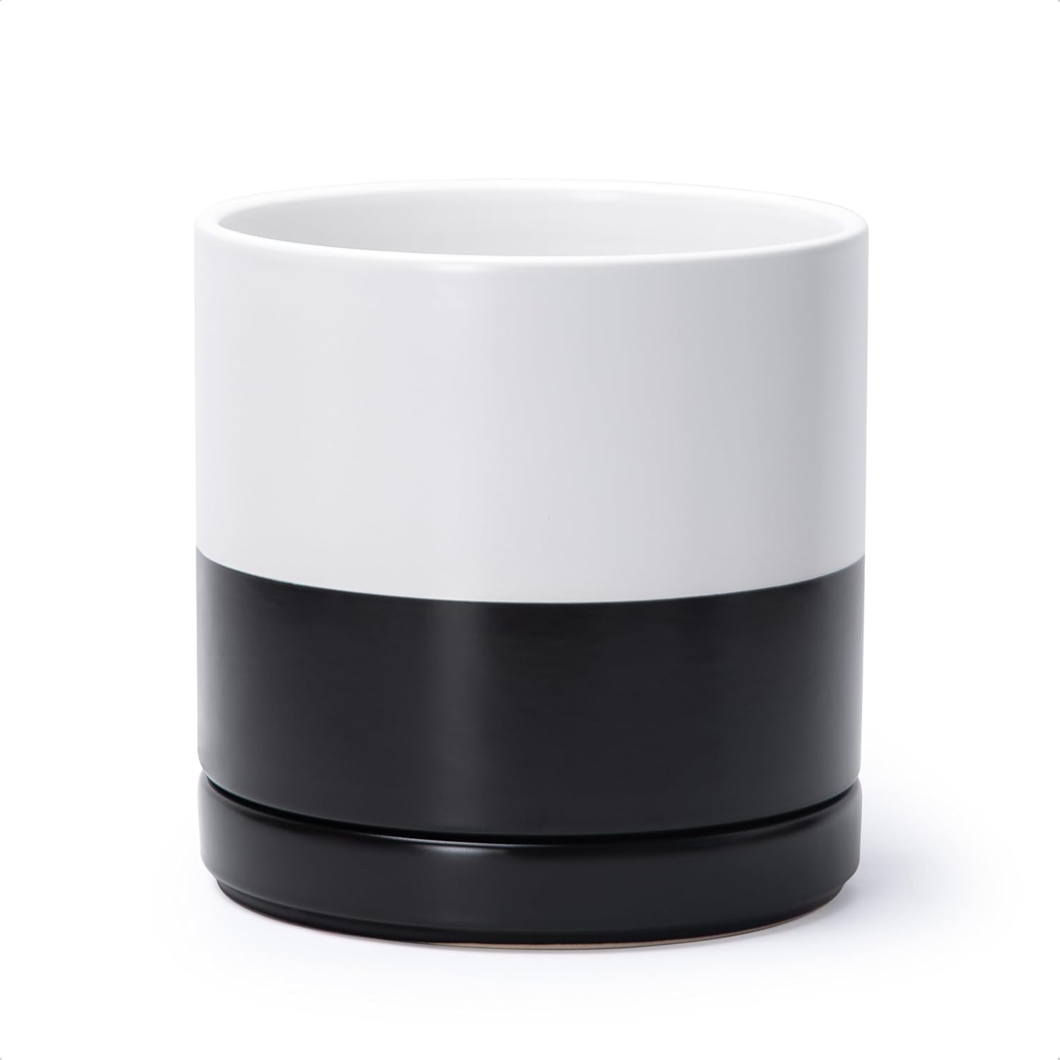 D'vine Dev 8.2 Inch Ceramic Planter Pot with Drainage Hole and Saucer, Indoor Cylinder Round Planter Pot, Layered Monochrome Black & White, 94-O-D-L