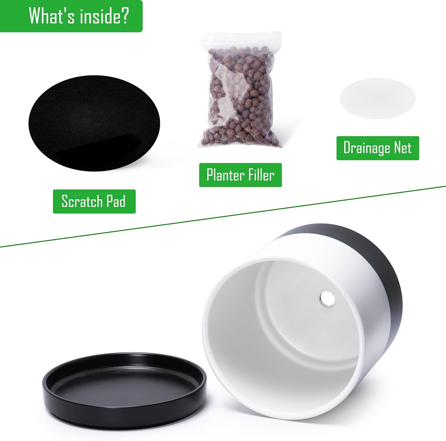- Thoughtful Functionality: Includes a drainage hole to prevent overwatering, plus a mesh drainage net and scratch pad for added convenience.