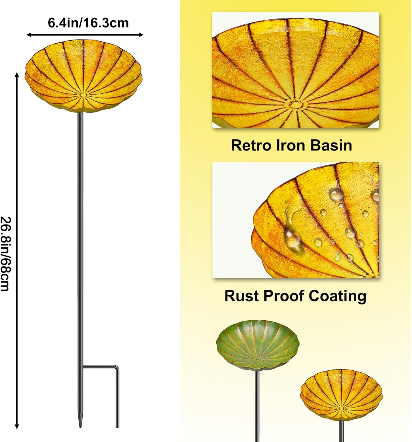 2PCS Metal Flower Bird Bath for Outside, Small Hummingbird Bath Bowl Detachable Birdfeeder Bowl Garden Decor for Outdoor Yard Lawn (2PCS-Yellow-Green)