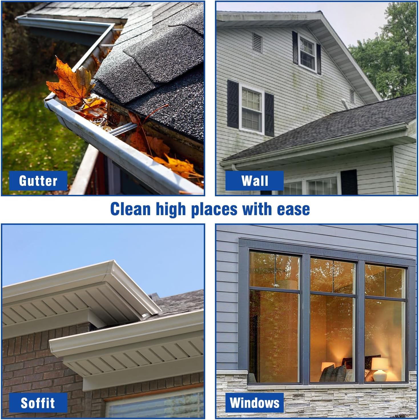 - PROFESSIONAL TELESCOPING WAND - The RAYNEL telescoping extension wand features a 6-stage heavy-duty design, delivering up to 25 feet of extended reach—no ladder required. Equipped with a scrub brush head and 3 specialized extension wands, it effortlessly cleans gutters, soffits, fascia, and siding with precision and stability.