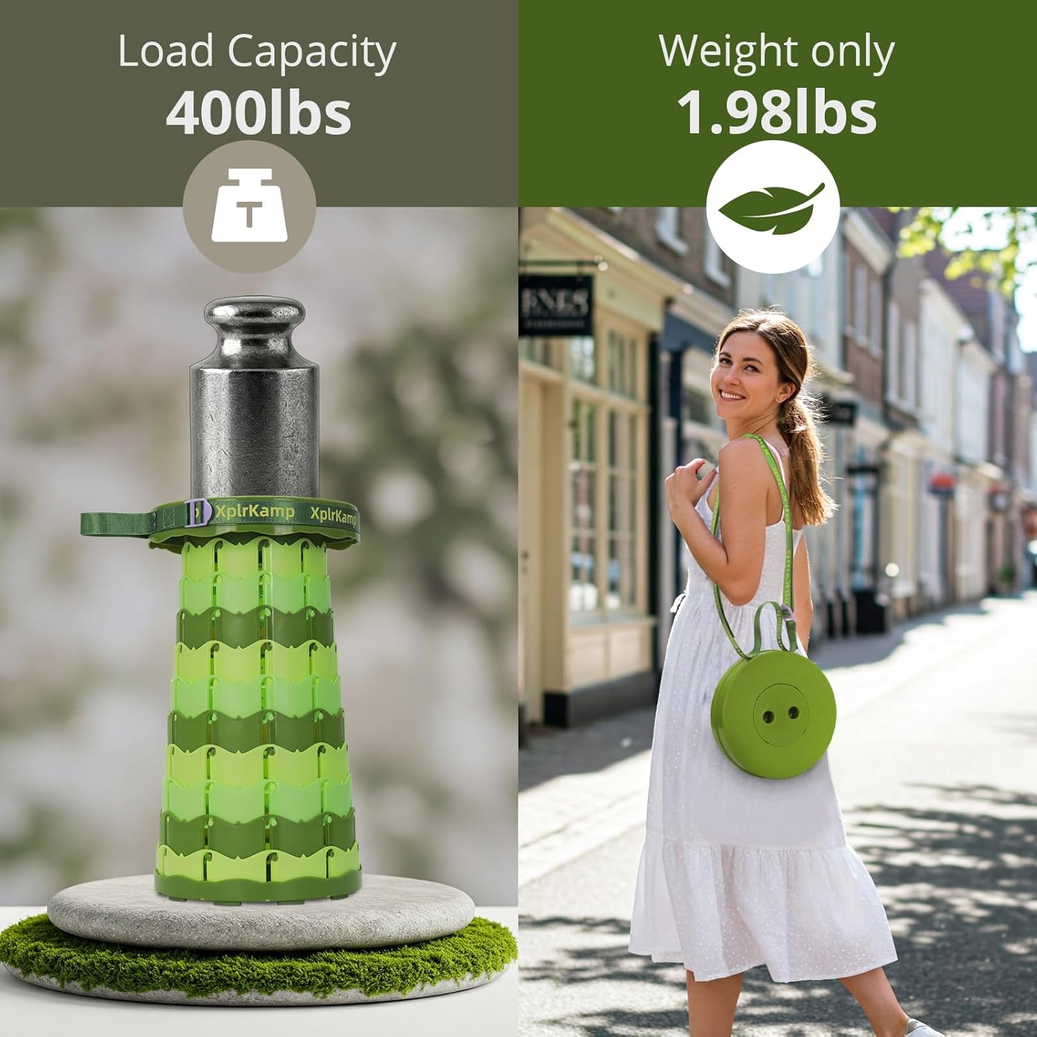 - Foldable & Portable: The XplrKamp foldable stool weighs only 1.98 lbs (0.9kg) with a collapsible size of 2.56"×9.84" (6.5×25cm).Features a 22-inch adjustable strap for shoulder carry or backpack attachment. Ideal as a camping stool for hiking, fishing,outdoor painting and picnics, while fitting seamlessly in cars, closets, or small spaces
