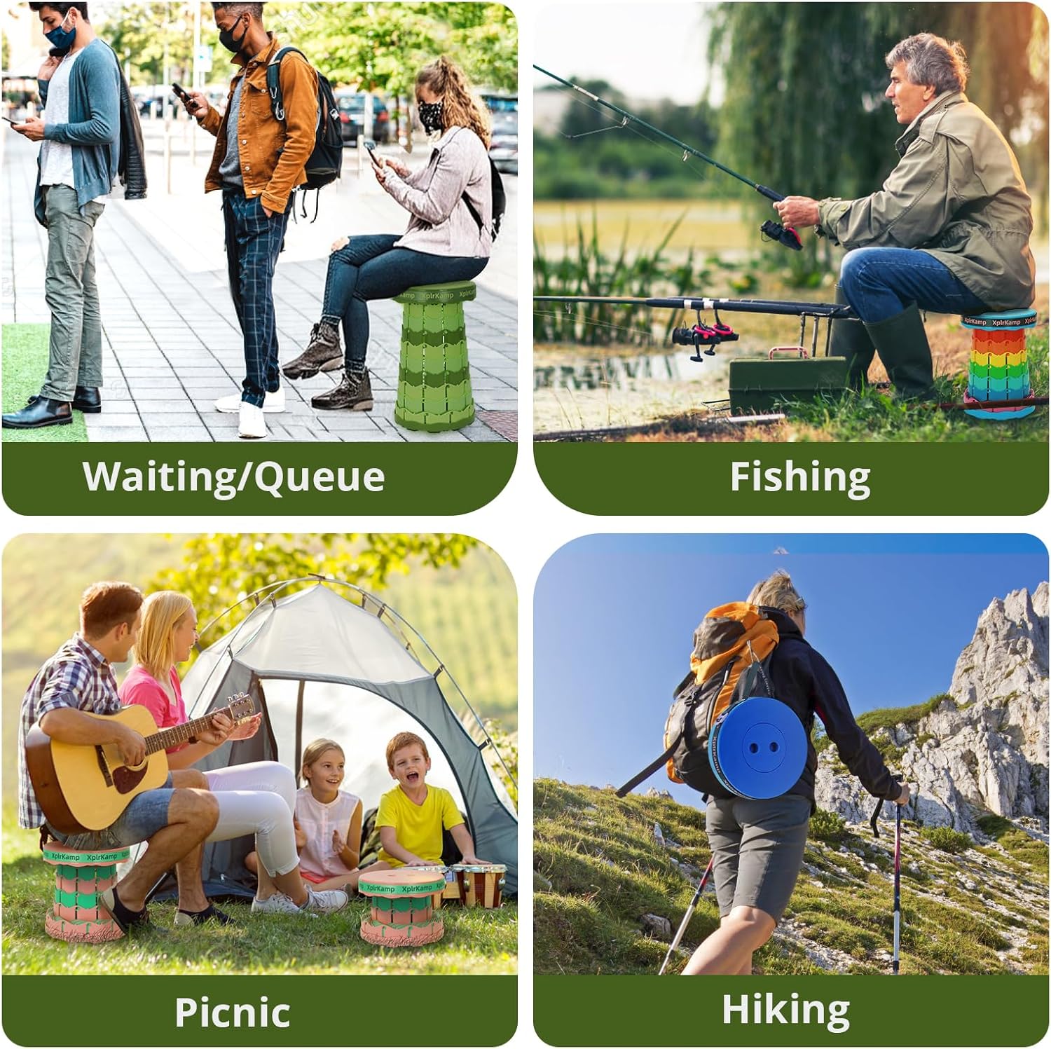 - Multi-Scenario: This collapsible stool transitions effortlessly from camping, hiking, fishing, and picnics to indoor/commuter use (offices, concerts, subway queues). With a telescopic design that fits in backpacks, it solves space constraints for DIY projects, plumbing work, gardening, and gift-giving occasions – weighing only 1.98lbs yet supporting 400lbs