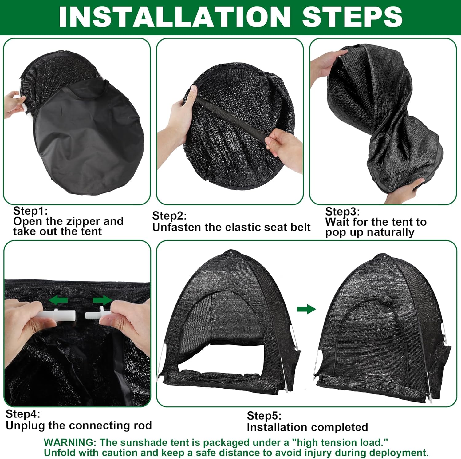 - Lightweight, Portable & Easy Installation: Your will get a carry bag and three shade covers. With a pop-up design (please be careful when opening), this 33.5x35.5x31.5 inch sunshade net requires no assembly and folds into a compact bag for easy portability, making it ideal for outdoor gardens, patios.