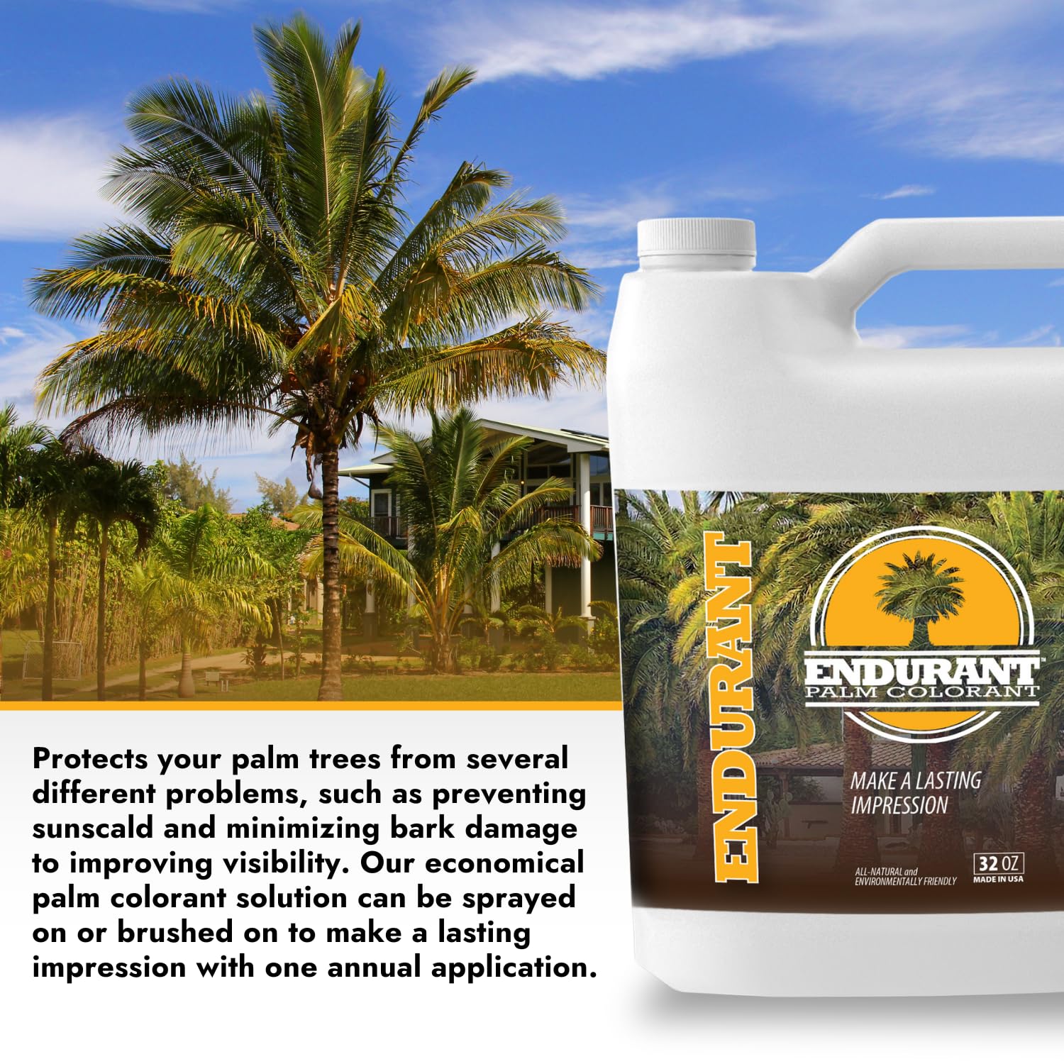 Endurant Palm Colorant – Non-Toxic Palm Tree Protector - Enhances Natural Beauty - Prevents Sunscald & Bark Damage -Easy Annual Application - Vibrant Long-Lasting Trunk Care - 32 oz