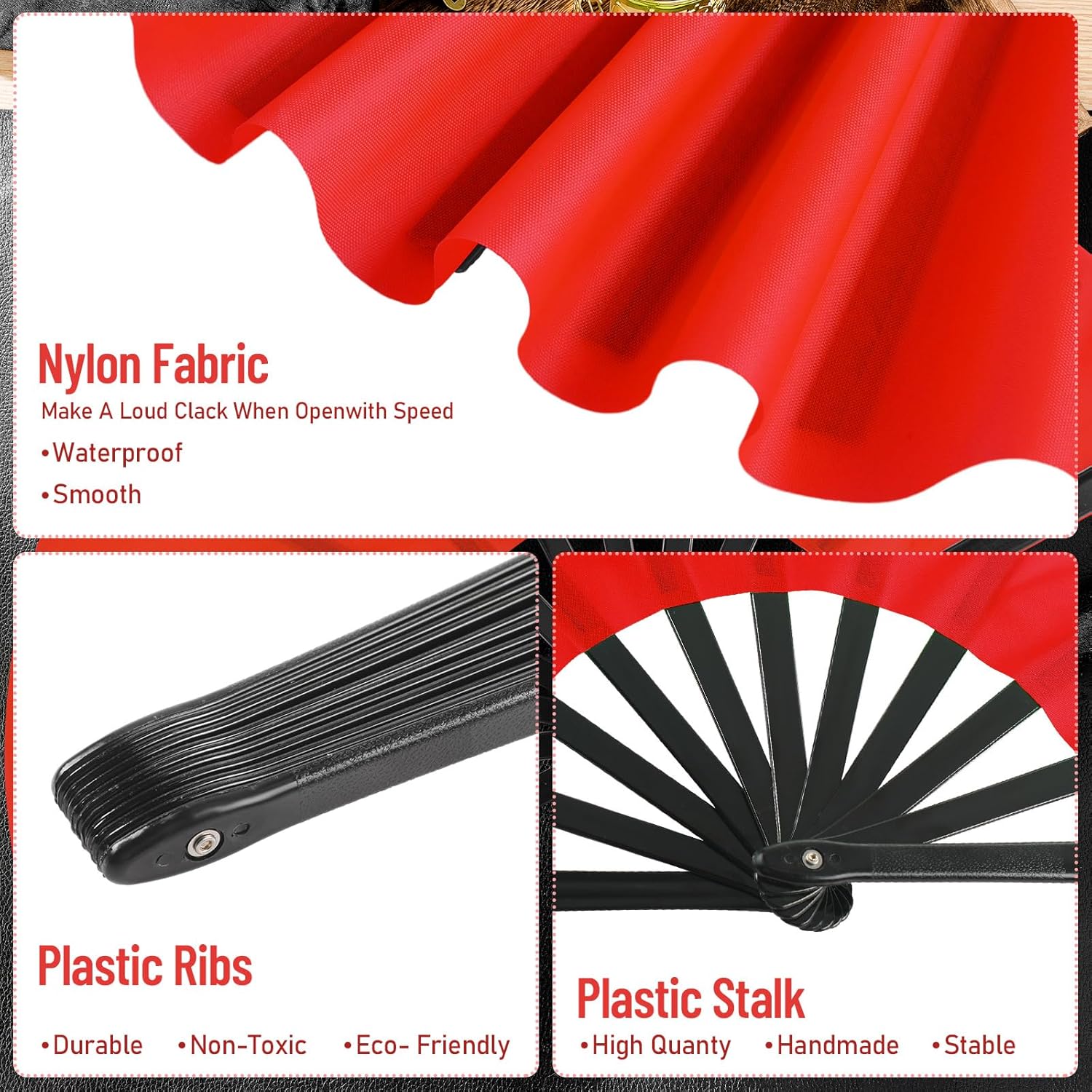 - Material and Measurement: made of quality plastic red and blue nylon cloth, lightweight and sturdy fabric, and each fan measures approx. 13.4 x 25 inches/ 34 x 63.5 cm (L x W, unfold state)