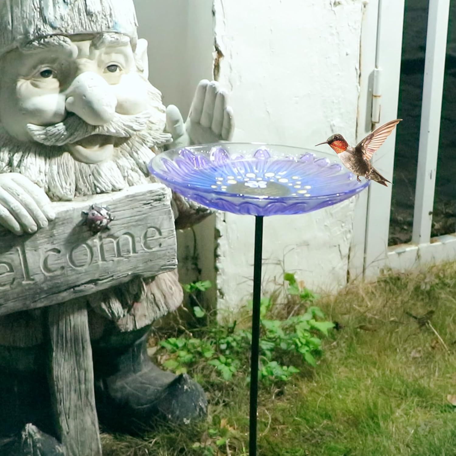 MUMTOP Bird Baths for Outdoors, Glass Bird Bath Stake, Purple Daisy Birdbaths & Support, Bee Baths for Garden, Outside, Lawn, Outdoor Decor