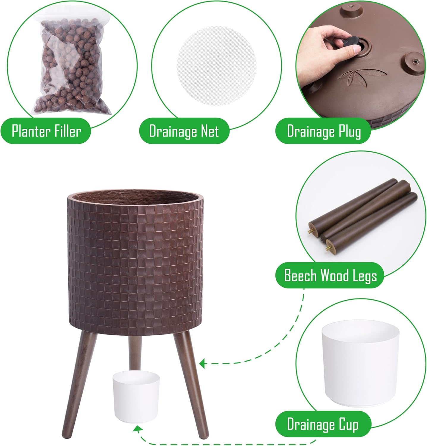 - Sturdy Wooden Legs: Supported by sleek wooden legs, this planter offers a stable base and enhances its overall aesthetic appeal.