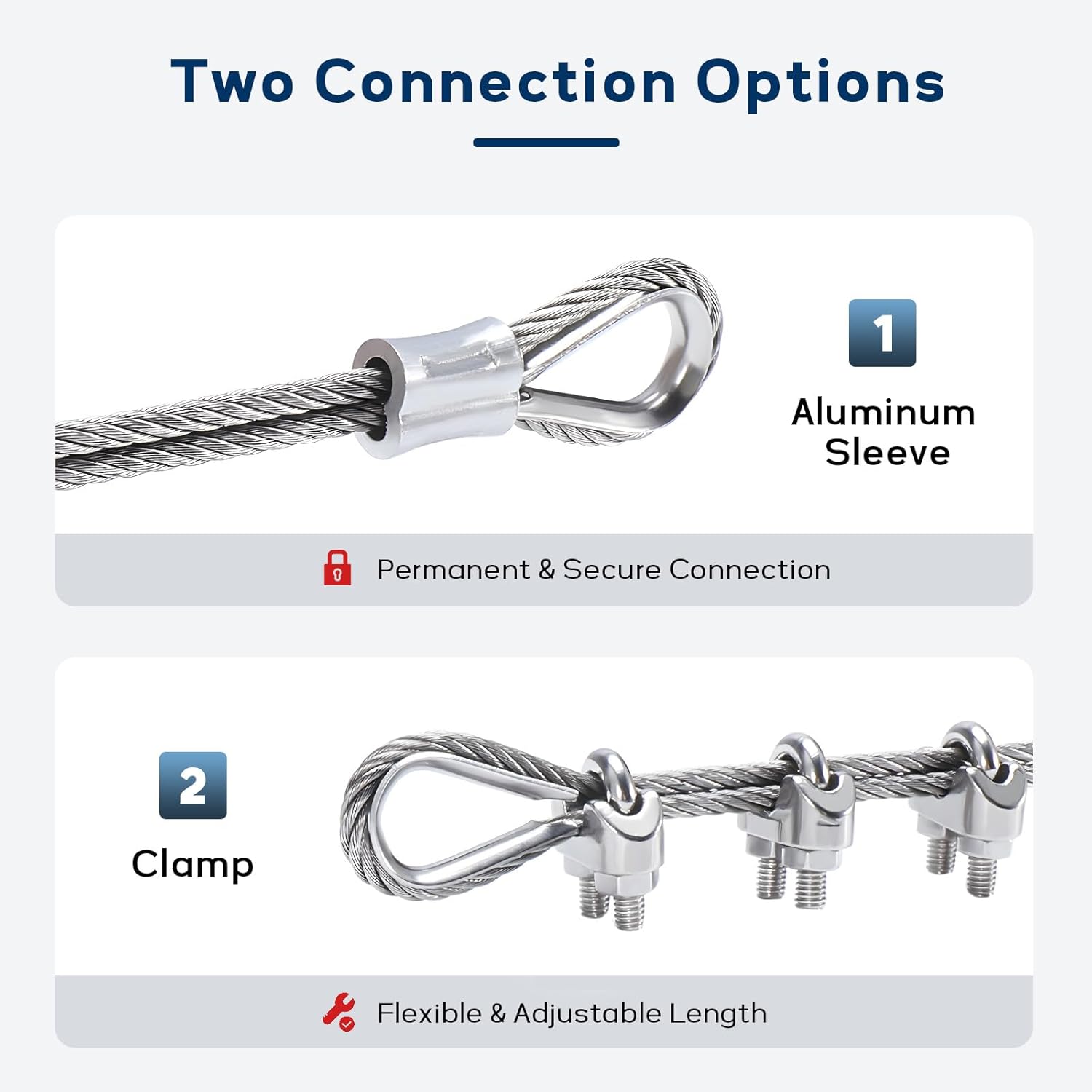 - Safe and Strong for Daily Use: Cable bare OD: 1/8 inch, Minimum breaking strength: 1780lbs. Designed for household applications, it’s ideal for securing lightweight items such as string lights, art pieces, or small garden installations