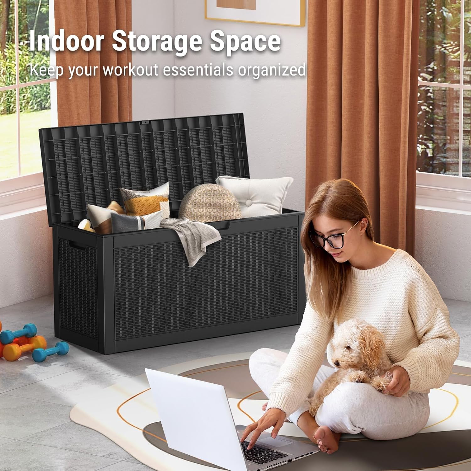 - 【Practical Outdoor Storage】- Effortlessly organize your outdoor essentials with this versatile deck box, perfect for storing patio funiture cushions, pool towels and cleaning supplies, gardening tools, or securely holding porch deliveries, it also doubles as a stylish side table, offering both practical storage and an extra surface for outdoor use