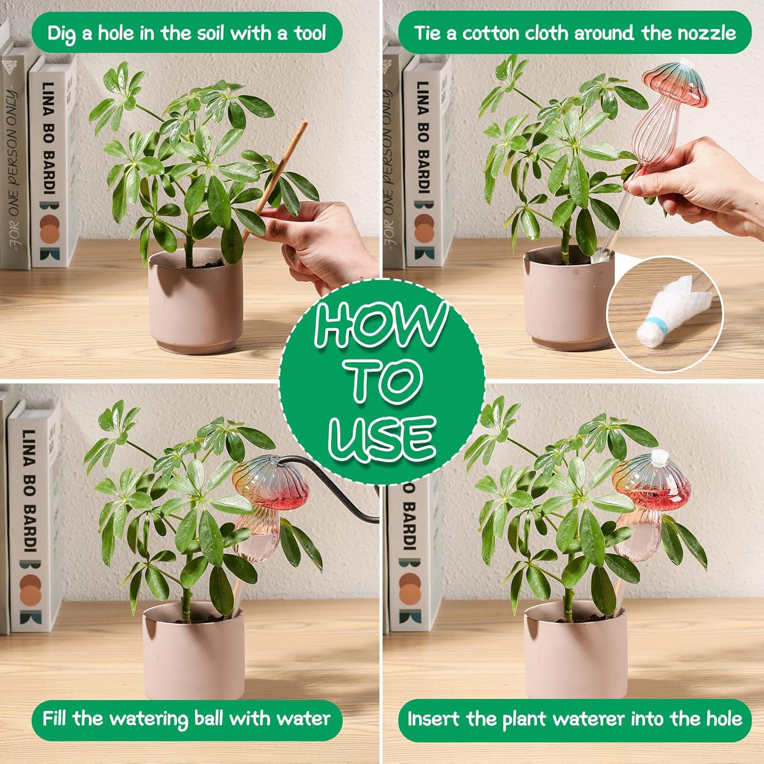 - Present: Hand-blown watering globes for indoor plants are tools that keeps the plants hydrated, and a beautiful decoration for house plants. Self watering globes a great present for family/plant lovers/busy