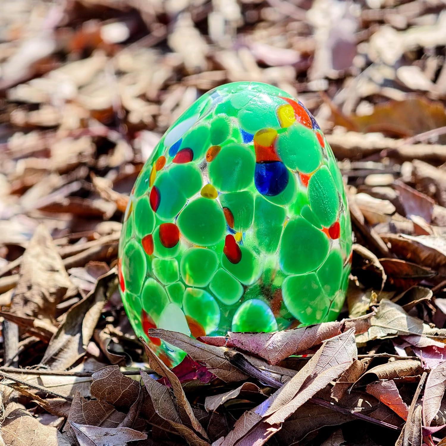 - Vibrant Color Palette:A captivating blend of vivid colors—bright reds, greens, blues, and yellows—adds dynamic visual appeal, making these glass eggs a striking addition to any decor style