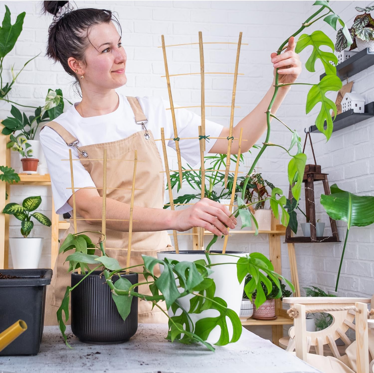 - 【Easy Installation】:The bottom of the bamboo trellis has been sharpened.Installing the plant trellis is effortless—just insert it into the pot and secure your plants. The trellises can be combined or adjusted to fit different plant sizes, making them suitable for a variety of growth stages.
