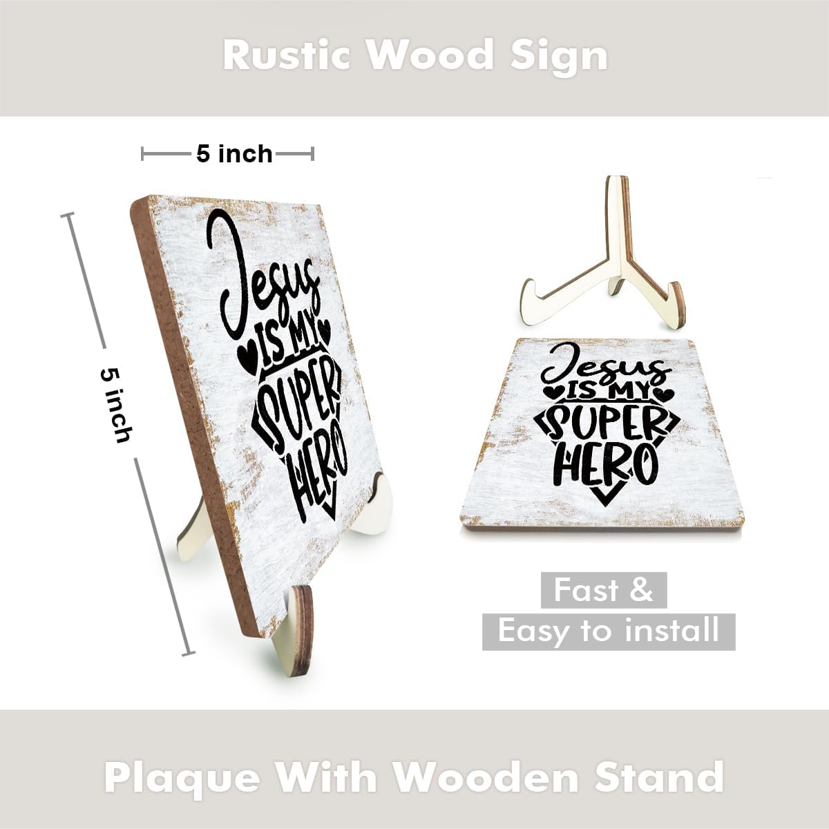 - PRODUCT INCLUDES: 1PCS Wood Sign (5.1x 5.1 inches) + 2PCS Wooden Stand (The wooden sign base is designed in two parts, cross-assembled to maximize the bottom contact area and achieve a perfect, will not block the content of text and pattern, and stable and non-dumping effect). Fast & Easy to install. It's sized to fit just right on your desk or you can put it in any position you want without taking up too much space.