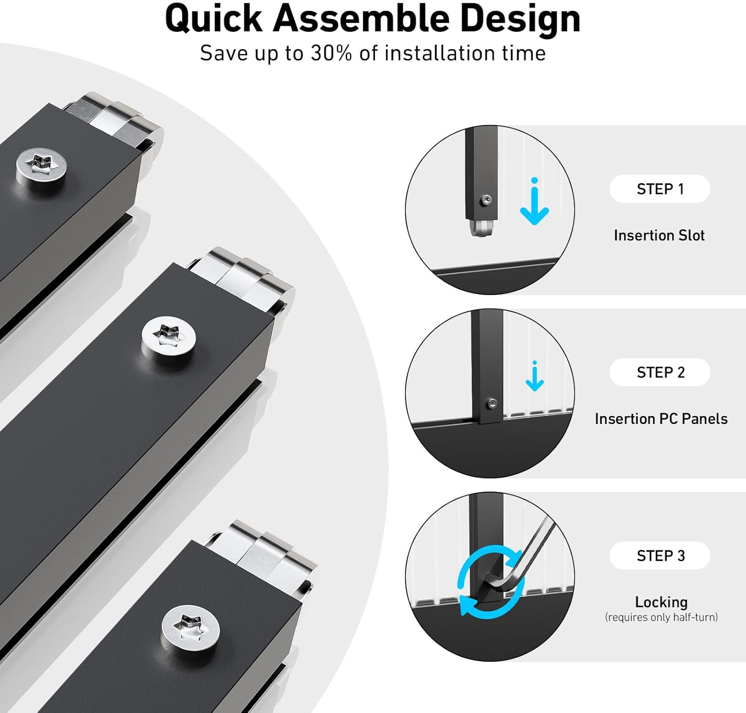 - Durable & Stable Structure-This polycarbonate greenhouse is built with a high-quality reinforced aluminum alloy frame and strengthened corners for excellent stability. Designed to handle tough outdoor conditions like strong winds, heavy rain, and snow. For added strength, you can seal the panel gaps with silicone (not included), making it a reliable green house for year-round use.
