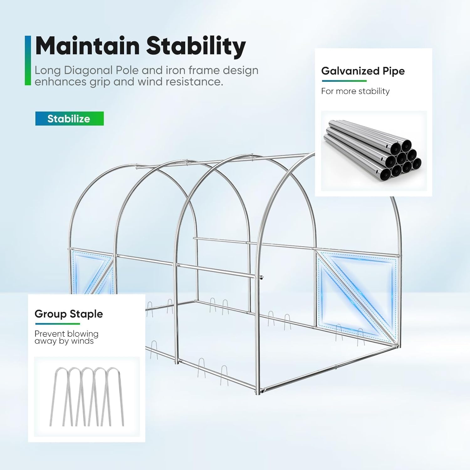 - Fast-Setup Design - Effortless setup meets ample space in this 10FT greenhouse. Experience the convenience of easy installation while enjoying a generously sized interior. Grow your garden with ease in a space that combines practicality and roominess.