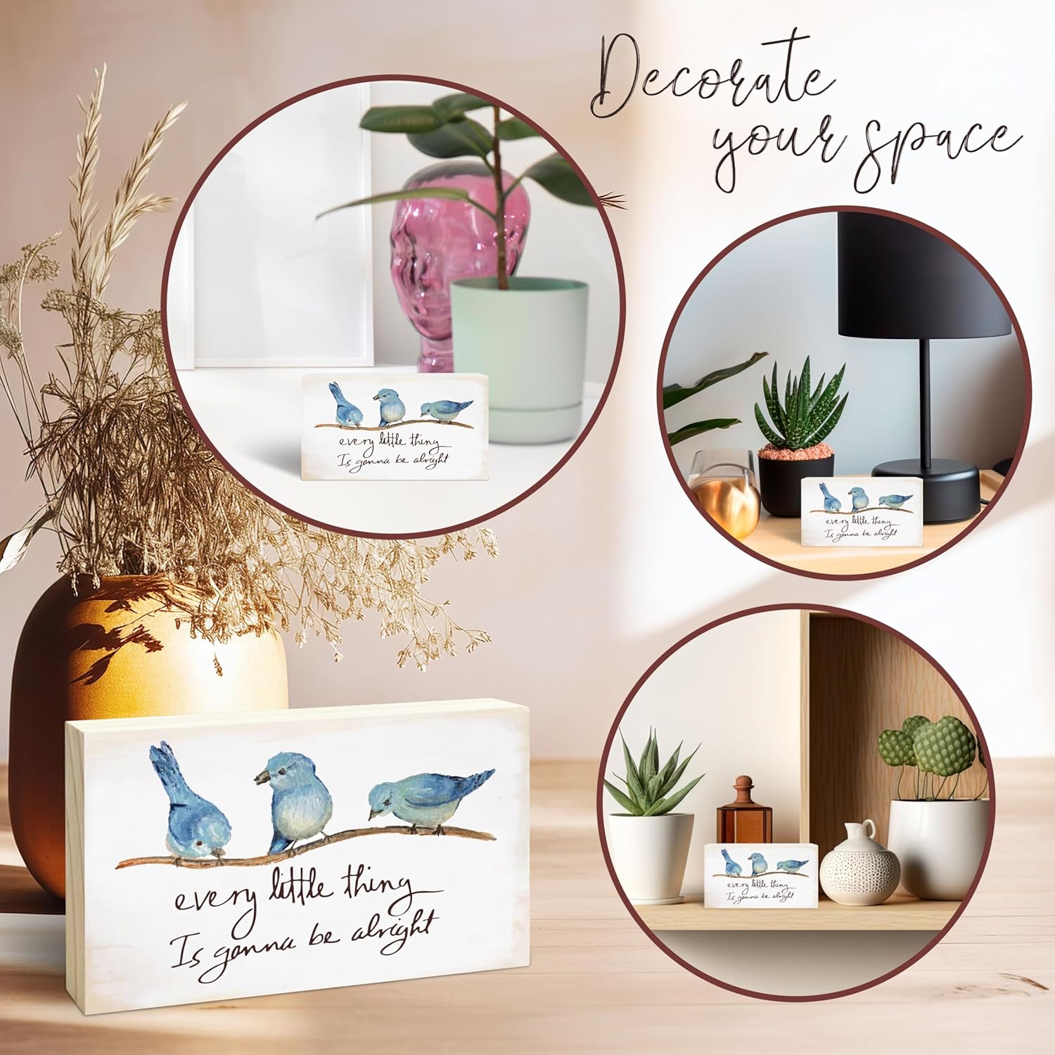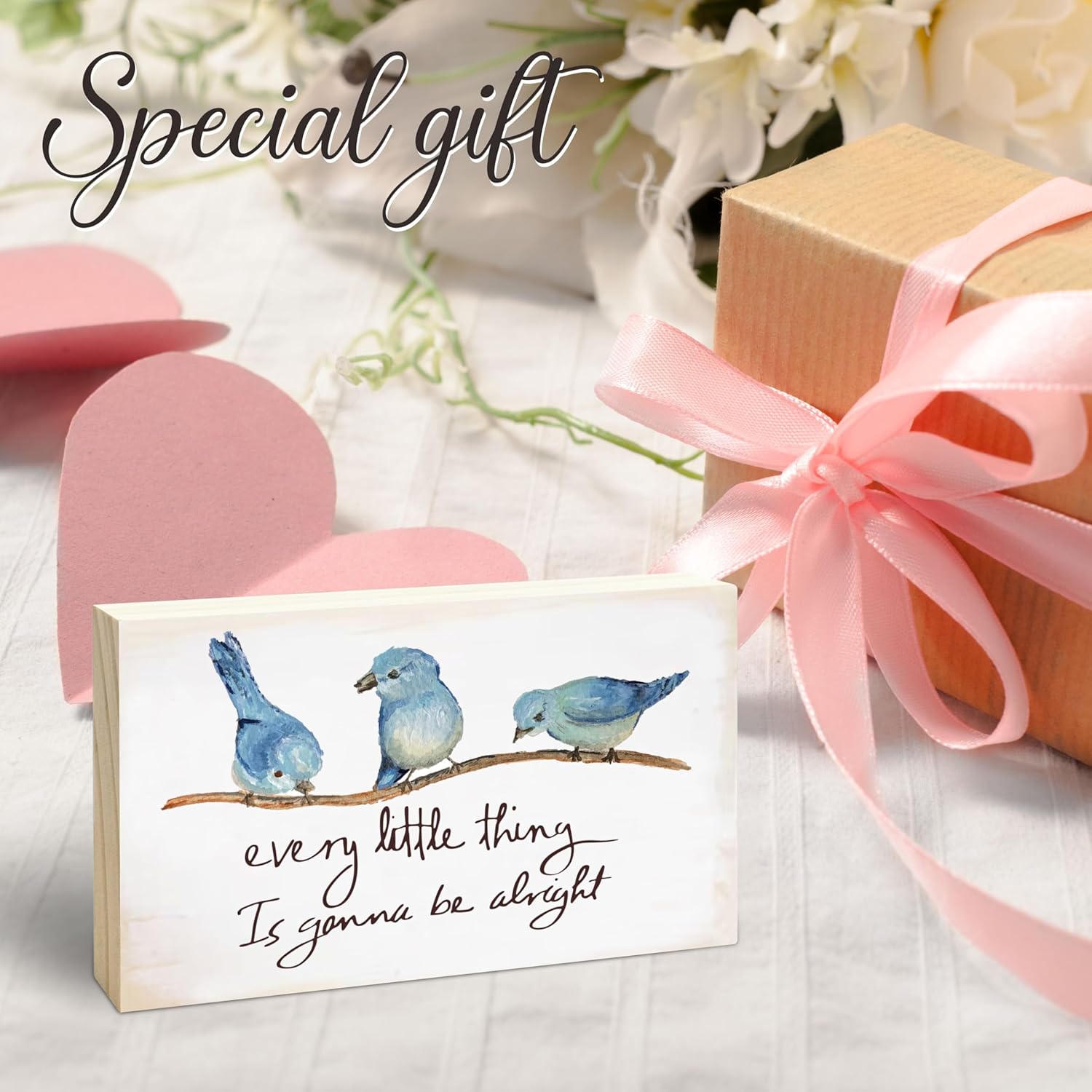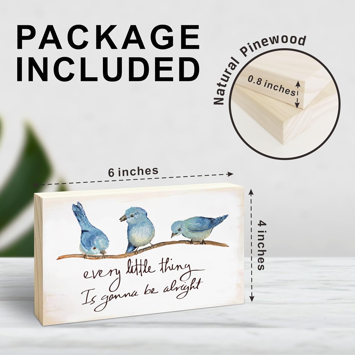 Rustic Pine Wood Block Sign - Every Little Thing Is Gonna Be Alright - Positive Wooden Plaque For Desk Top, Shelf, Living Room, Gift For Friends, Home & Office Decorations(4 X 6 Inches) - D04