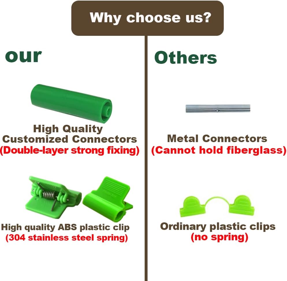 - Upgraded connector - internal double-layer design can be quickly and firmly connected to the garden hoops, Connectors made of thickened and stiffened synthetic materials solve the problem of connector breakage due to force and temperature changes, allowing for long periods of use in extreme weather!