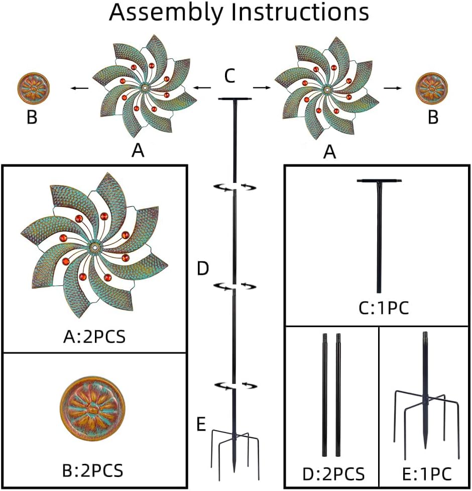 - Easy Installation:The double wind spinners are easy to install, no extra tools are needed, just tighten all the parts, the whole process will only take 2-3 minutes