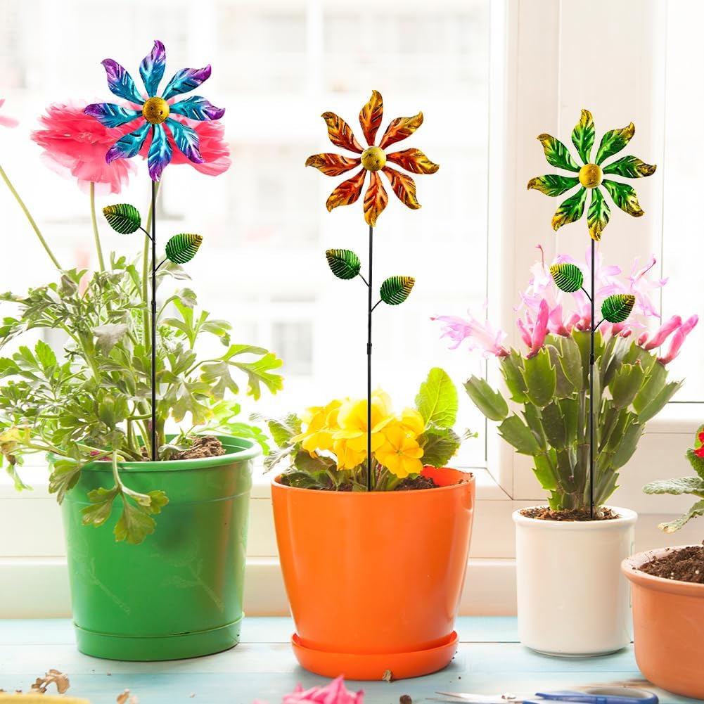 DREAMYSOUL 3 Packs Metal Flowers Wind Spinners Outdoor, Pinwheel Decorative Garden Stakes, Metal Wind Spinner for Yard and Garden Decor