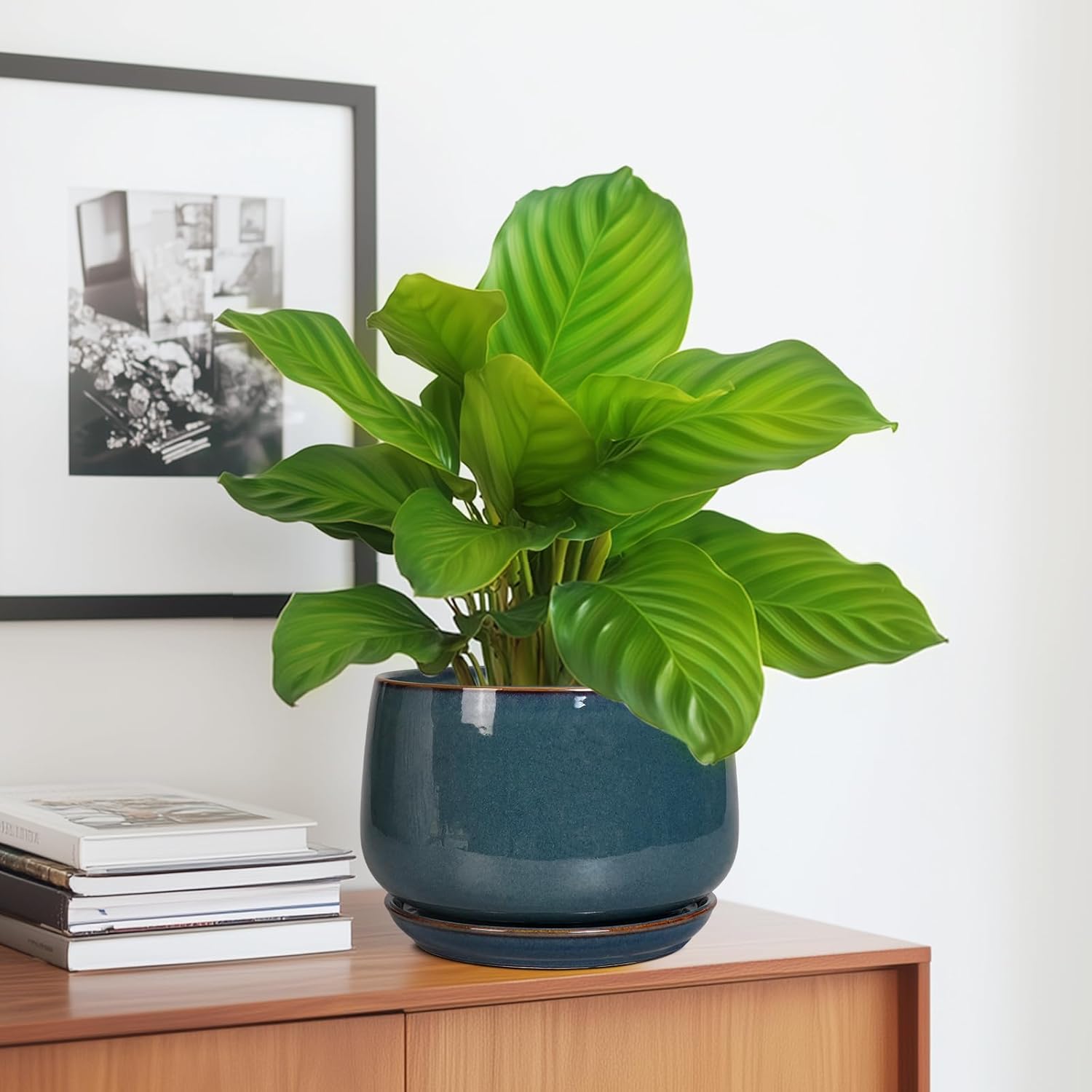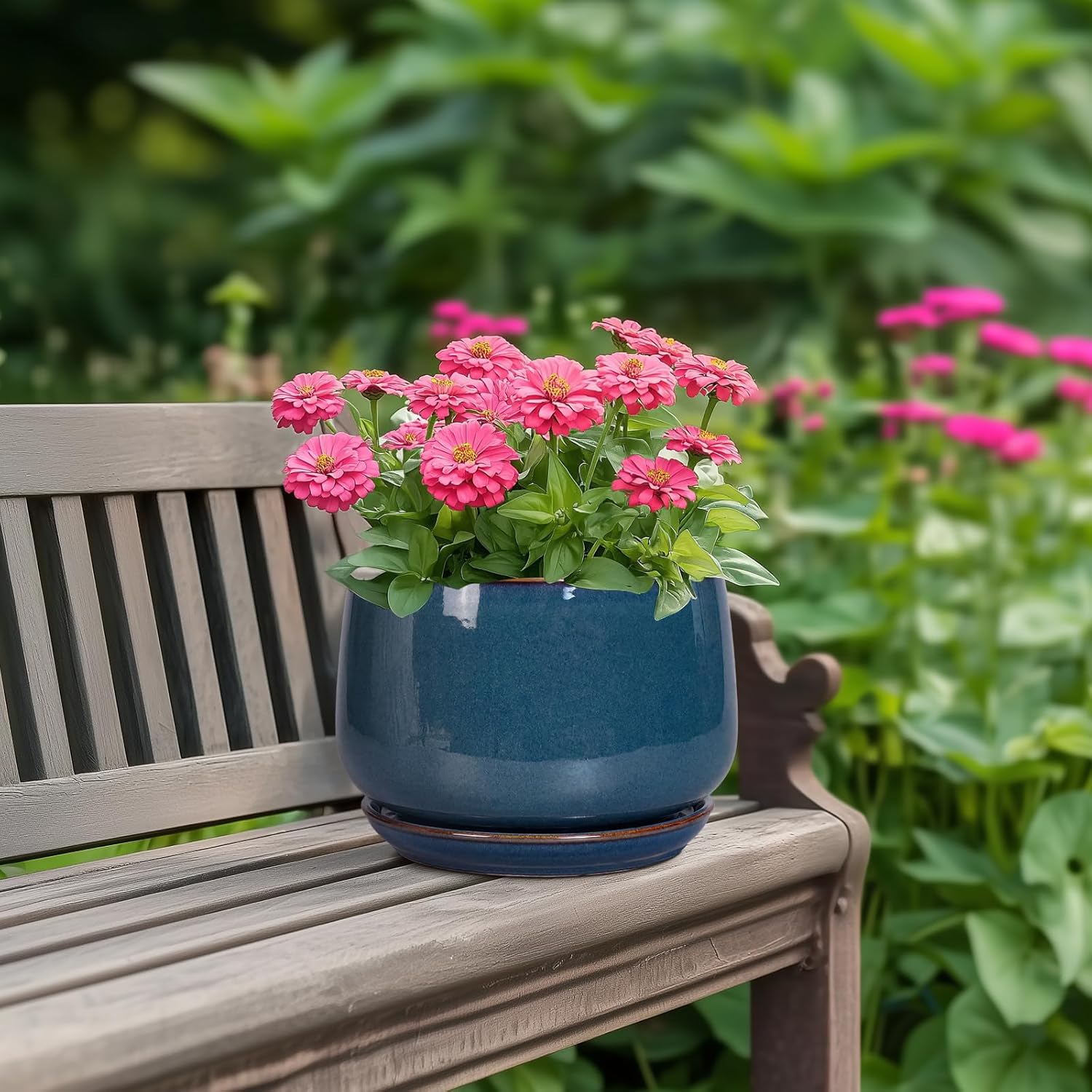 - Indoor & Outdoor Decor: This blue flower pot is fit for various home decor and garden decor, round Planter is ideal choice for decorating living rooms, tabletops, windowsills, bathroom, balconies, patio, offices, porch, kitchens, desk, apartment, garden and more