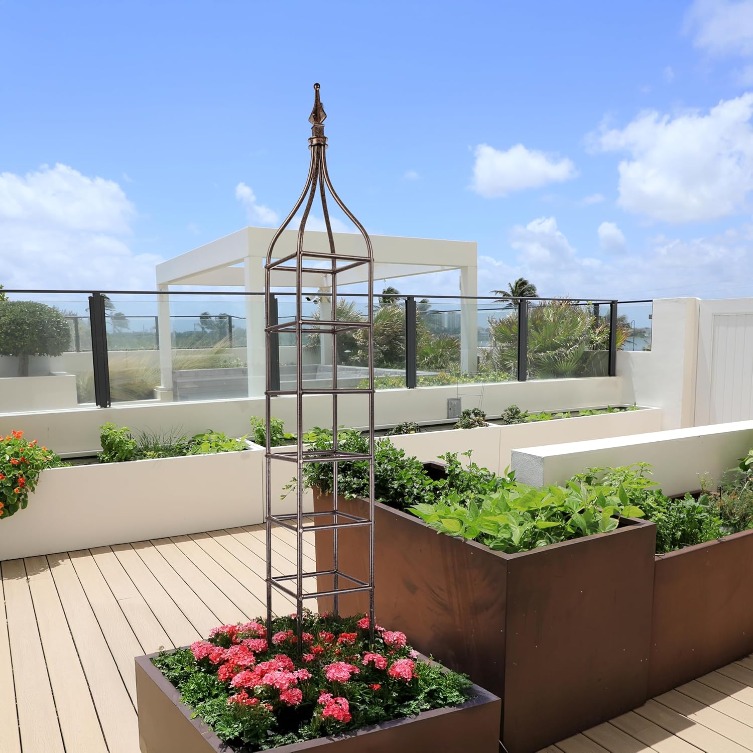 H Potter Trellis Obelisk Tall Metal Garden Decor Vertical Yard Art for Roses Climbing Plants Weather Resistant Wrought Iron Ornamental (Charcoal Brown, 6 Foot)