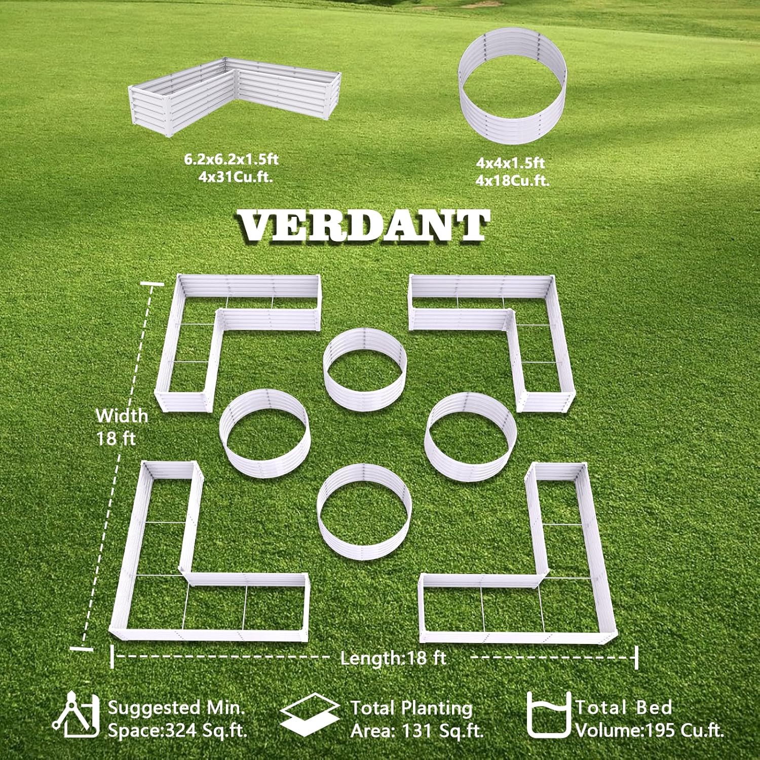 A ANLEOLIFE 8-Pack 4X4X1.5ft & 74x74x18in Deep Root Galvanized Raised Garden Beds Outdoor for Planting Vegetables Flowers Herb, Antique White