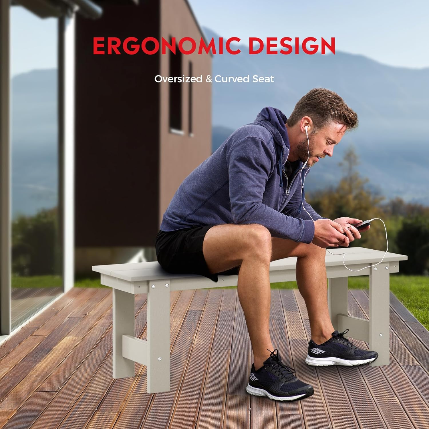 Garden Bench, Front Porch Bench Entryway Park Bench, Patio Backless Garden Seat for Outdoors/Indoor, Low Farmhouse Bench, Sand