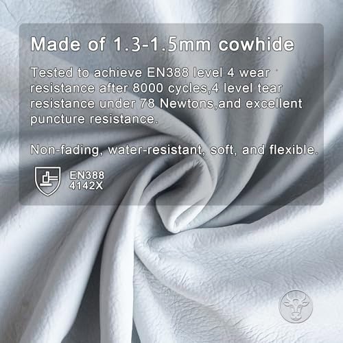 - Excellent leather material: These work gloves are made of 100% thick cowhide leather, thickness 1.3-1.5mm. They are soft, flexible, and have no irritating odor, making them ideal as durable working gloves for various tasks.