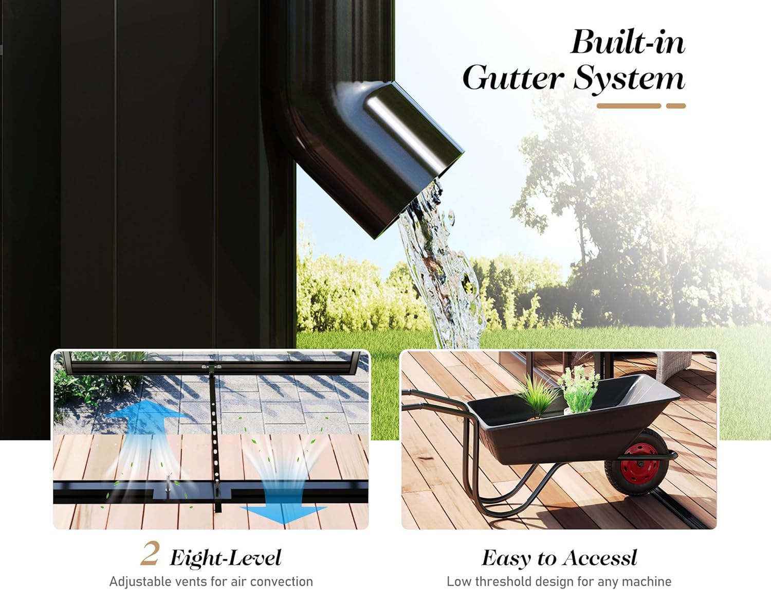 - Improved Ventilation and Gutter System: Our sunroom kit features 2 windows ensuring better air circulation, drainage holes and attached pipes to collect and drain water