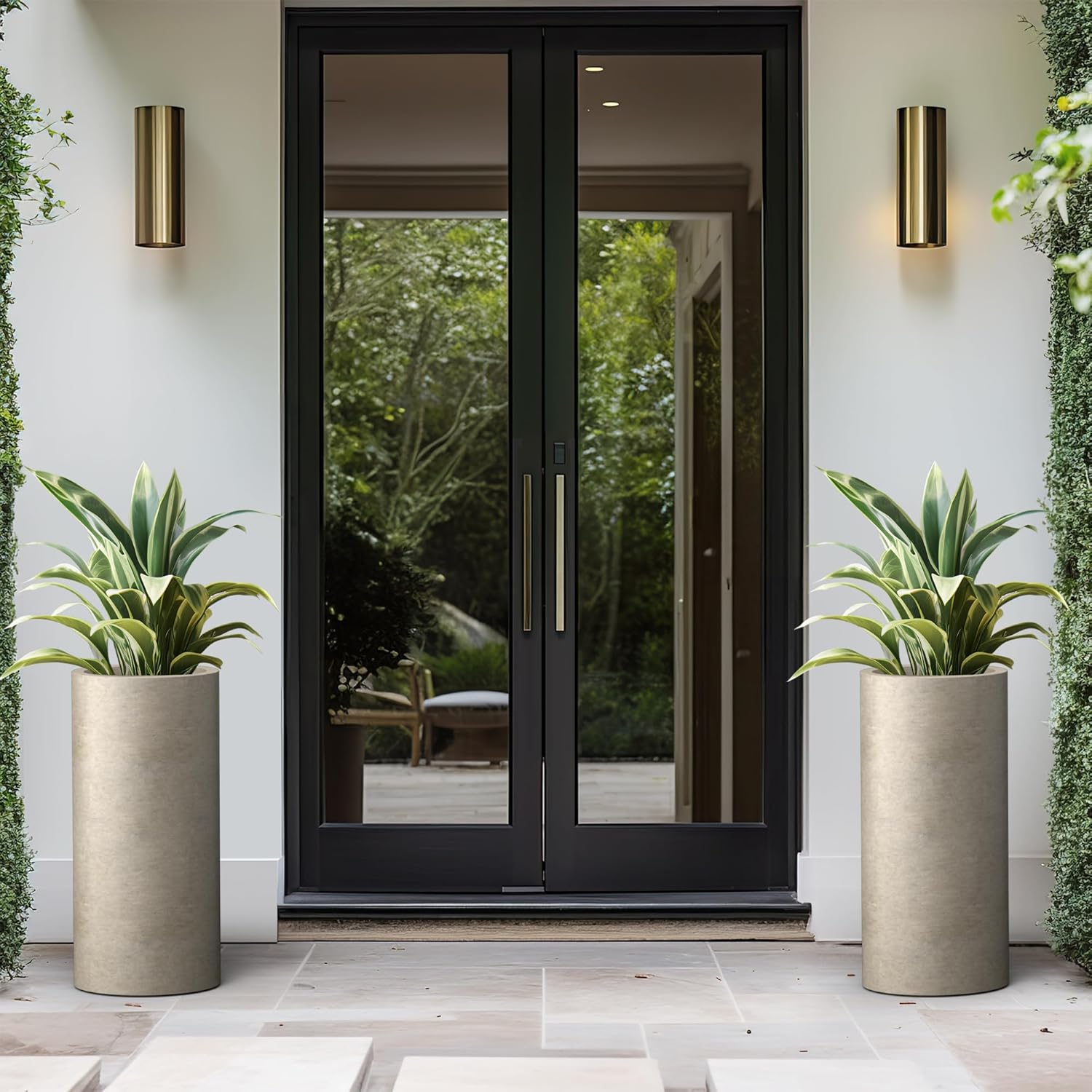 Kante 23.6 Inch Tall Cylindrical Planter, Large Round Plant Pots with Drainage Hole, Made with Concrete, Suitable for Indoor Outdoor Plants, Home Decor, Weathered Concrete
