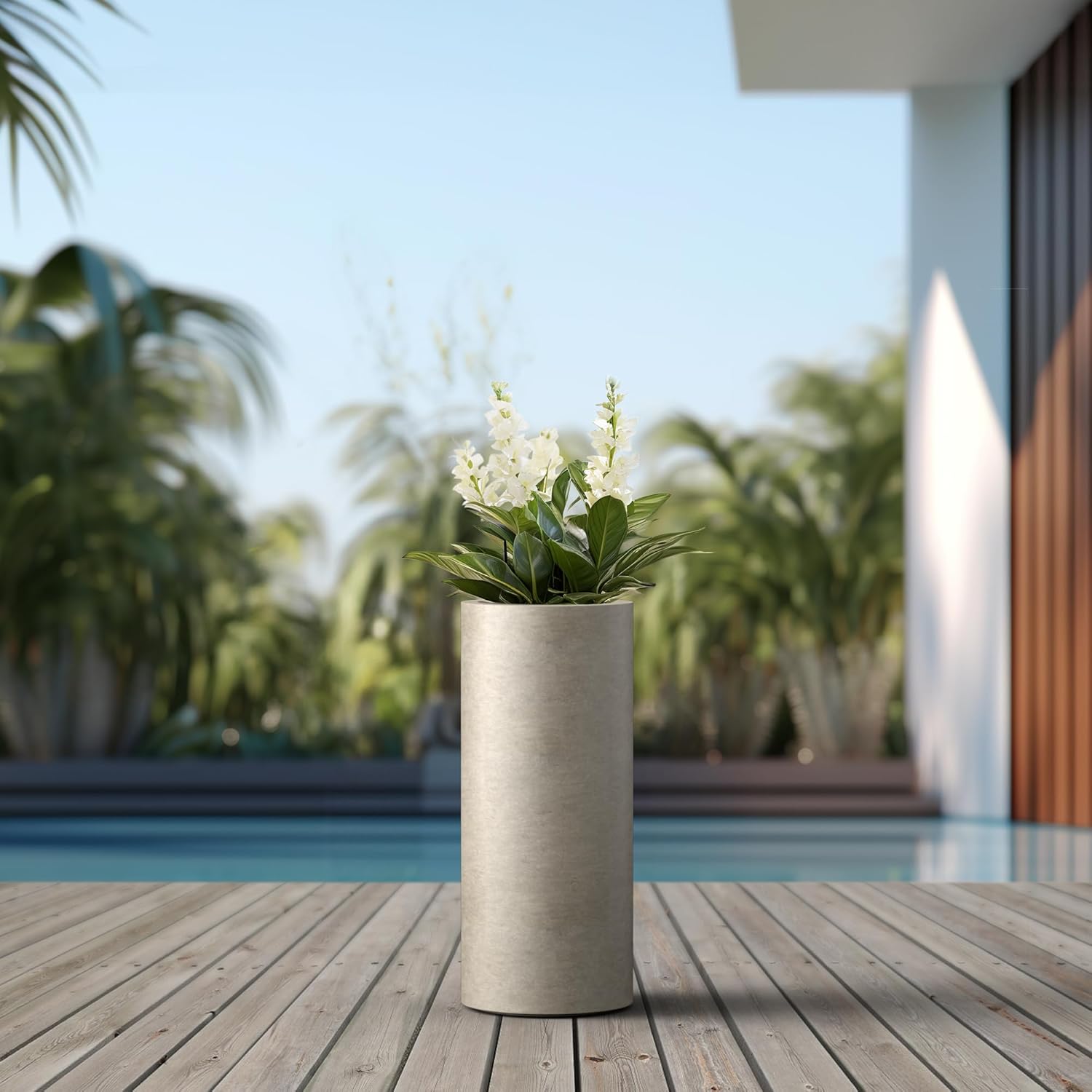 Kante 18.9 Inch Tall Cylindrical Planter, Large Round Plant Pots with Drainage Hole, Made with Concrete, Suitable for Indoor Outdoor Plants, Home Decor, Weathered Concrete