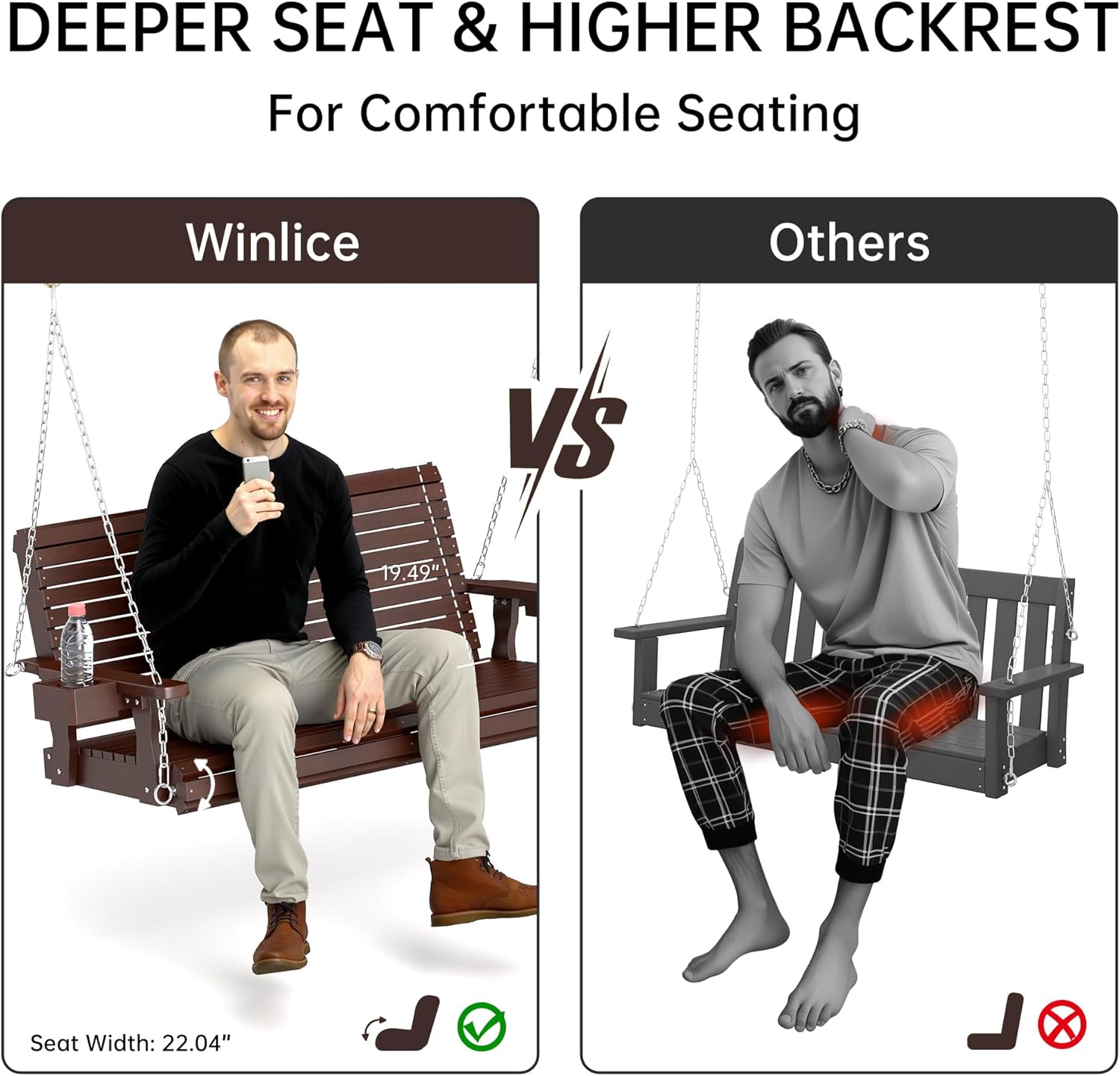 - Designed for Comfort: The wider armrest and deep seat offer enhanced support, making this outdoor porch swing ideal for enjoying your leisure time. Rollback design contours to your knee and high backrest provides optimal support and comfort