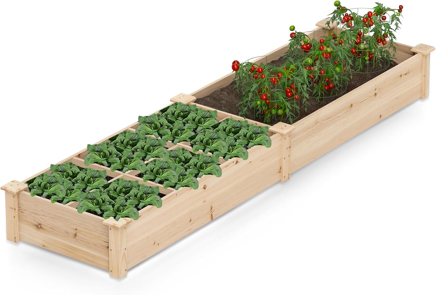 HAPPYGRILL Raised Garden Bed, Wooden Planter Raised Bed w/2 Garden Boxes, 7 Compartments, DIY Painting Available, Elevated Planter Box for Patio Garden Backyard Lawn Gardening, 90” x 25” x 10”