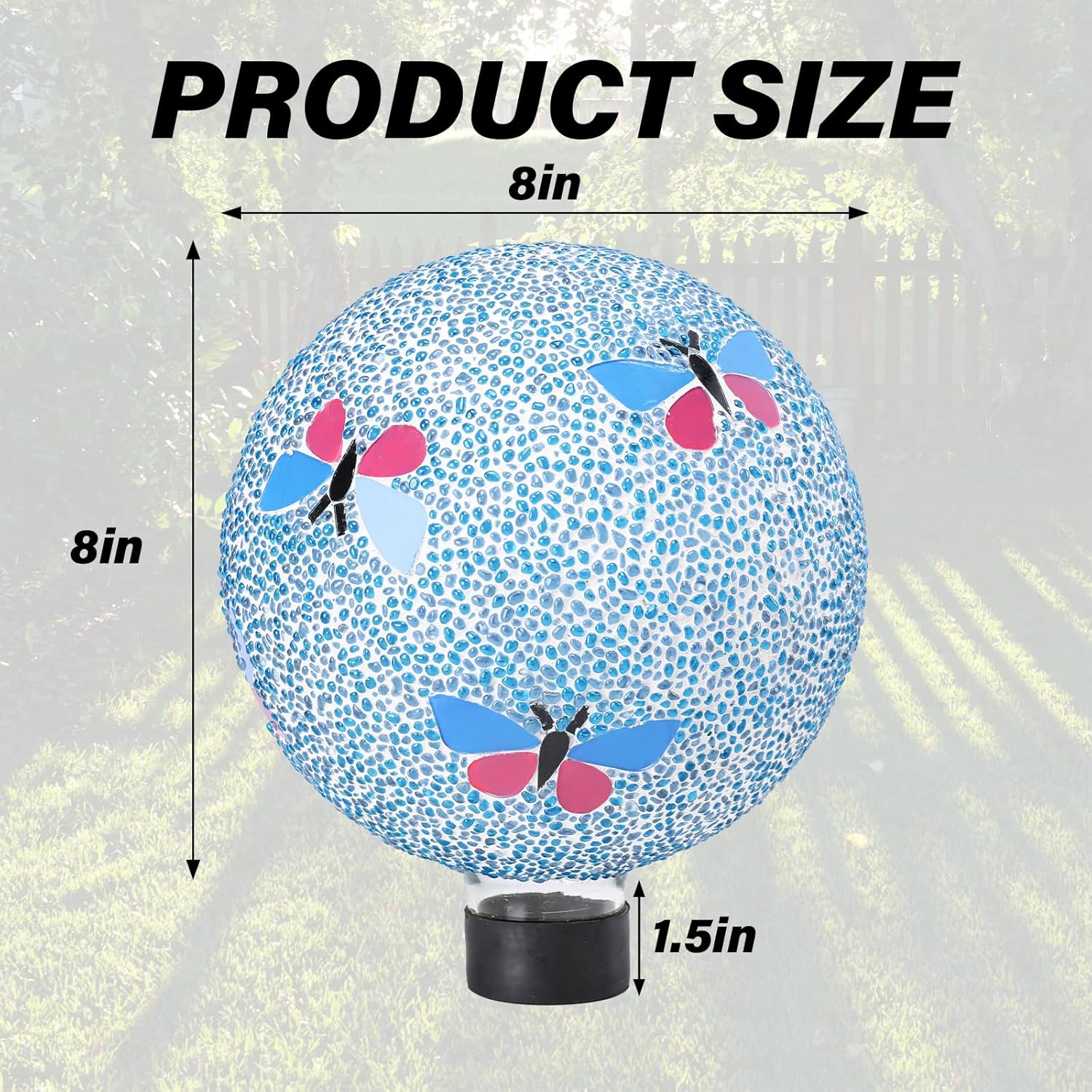 Gazing Ball 8 Inch Butterfly Glass Mosaic Garden Globe Outdoor Gazing Globe Yard Ornament for Garden Yard Home Lawn Outdoor Decoration Gift for Women (Not Solar Powered)