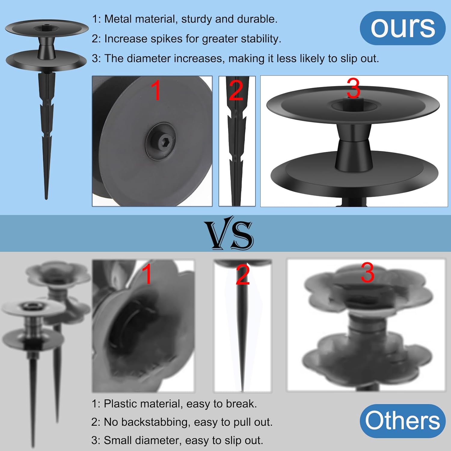 - 【High Quality Pure Metal Garden Hose Spike】This garden hose guide spike is made of high quality thickened pure metal (better than plastic),sturdy and dural,delicate and textured. The hose guide stakes' surface is covered with rust-proof protective coating. It features water resistant and corrosion resistant which can effectively prolong garden hose guide's service time.