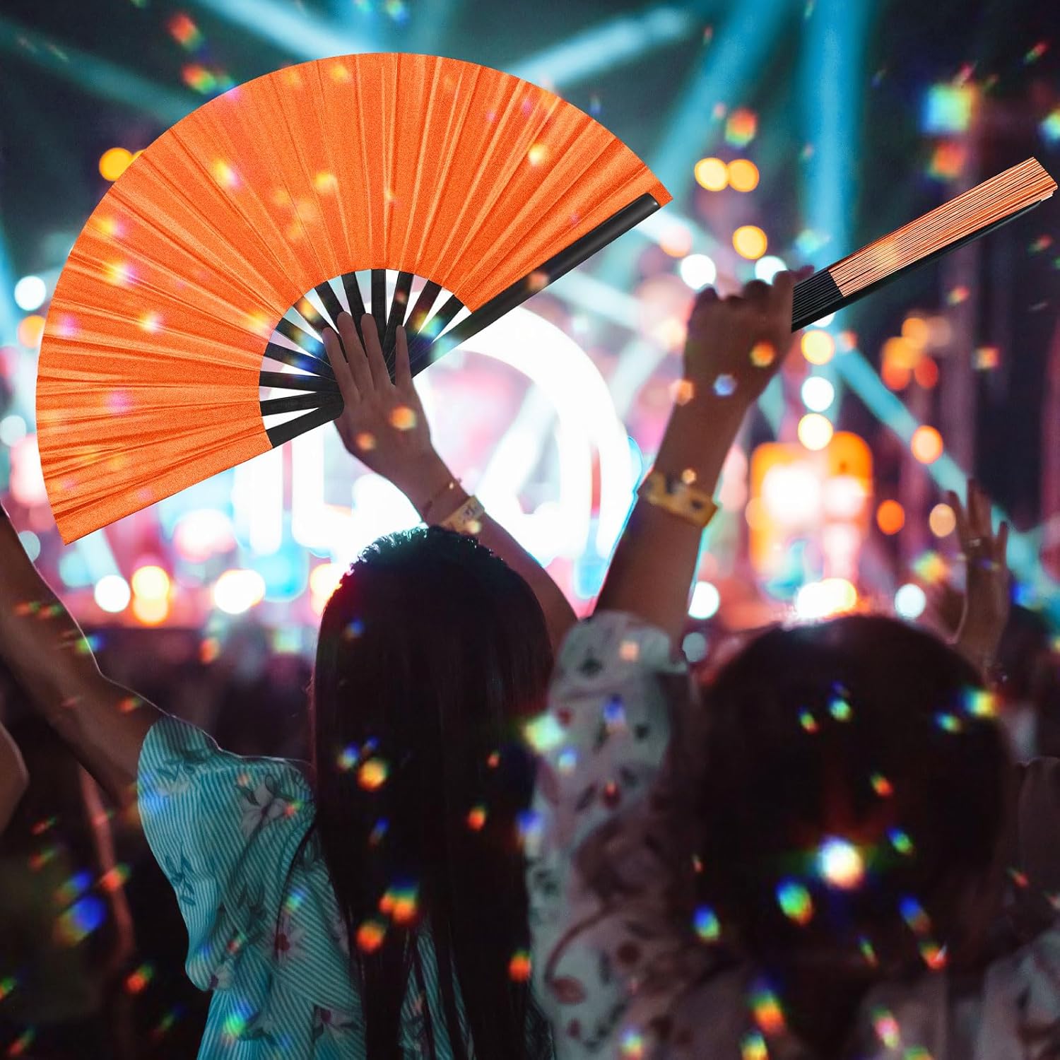 Maitys 2 Packs Large Clap Fans for Line Dancing Large Chinese Folding Hand Fans for Men and Women, Festival, Tai Ji, Kungfu, Martial Art, Gifts (Glitter Orange)