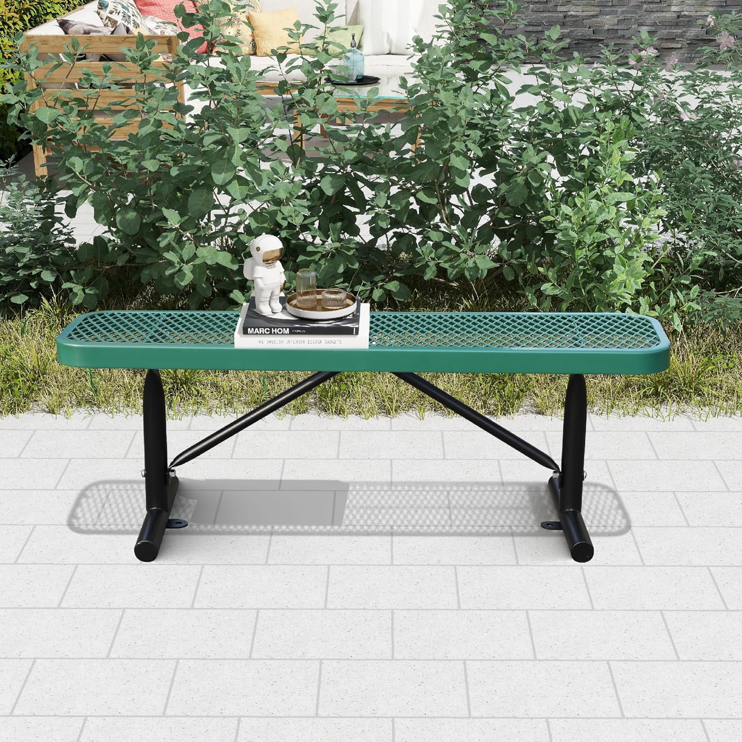 4 Feet Heavy Duty Metal Park Bench for Outside, Outdoor Bench with Portable Frame, Commercial Benches for Shopping Mall, Store, Park, Patio, Deck, Green