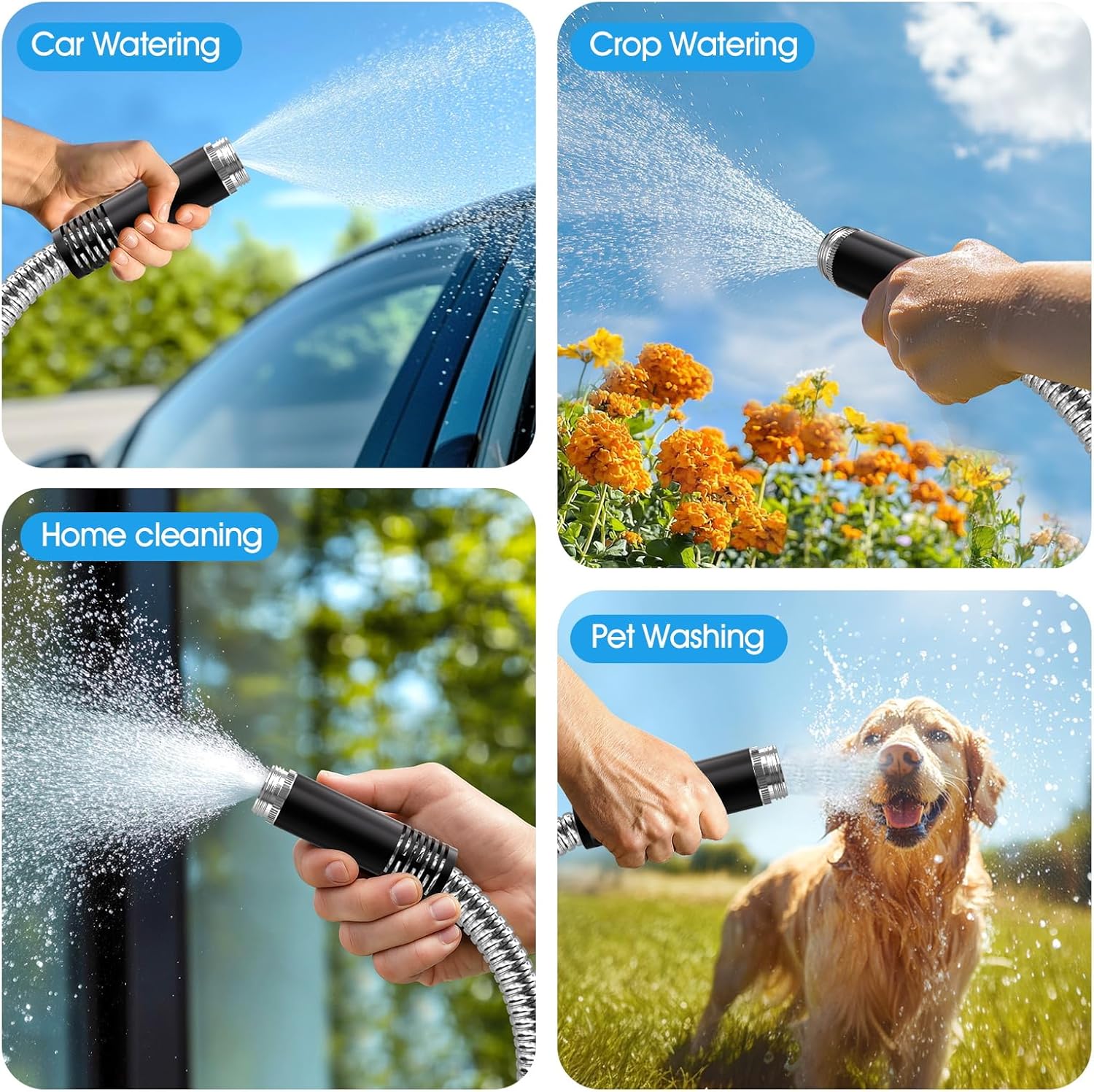 - Premium Construction: Crafted from high-grade stainless steel, this 15-foot garden hose offers exceptional durability and flexibility while remaining lightweight for easy handling
