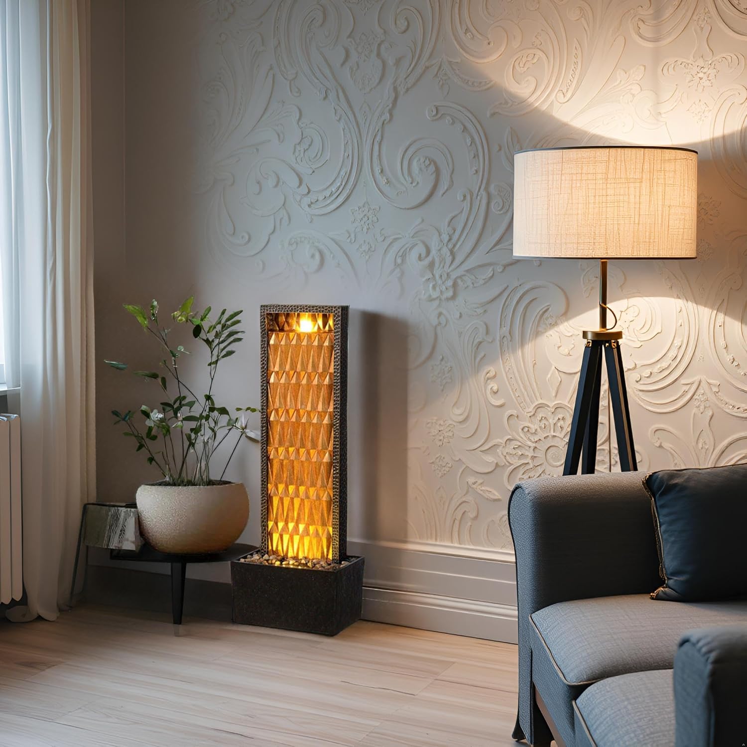 - Luxurious Metallic Gold Design: The elegant golden finish, paired with a mesmerizing waterfall effect, adds a touch of opulence and sophistication to any setting.